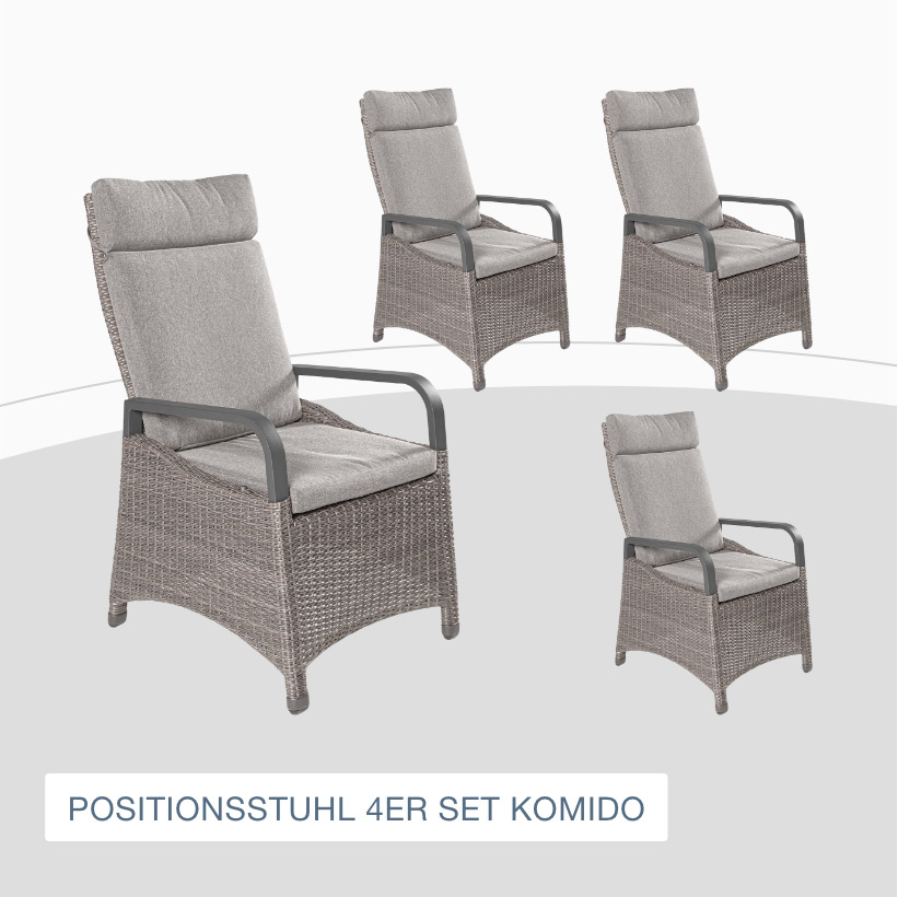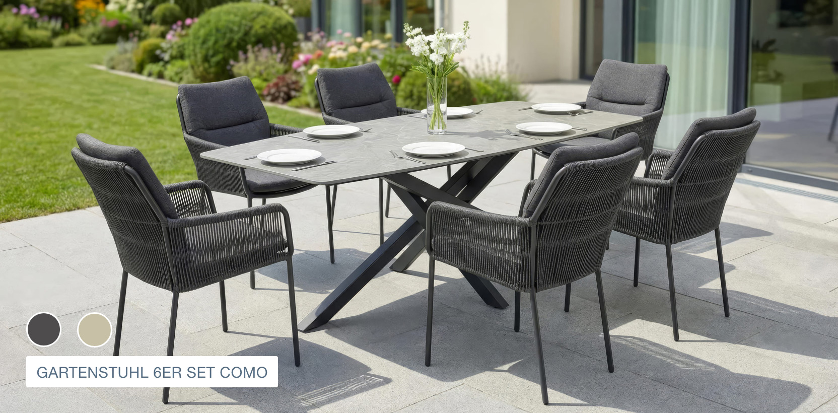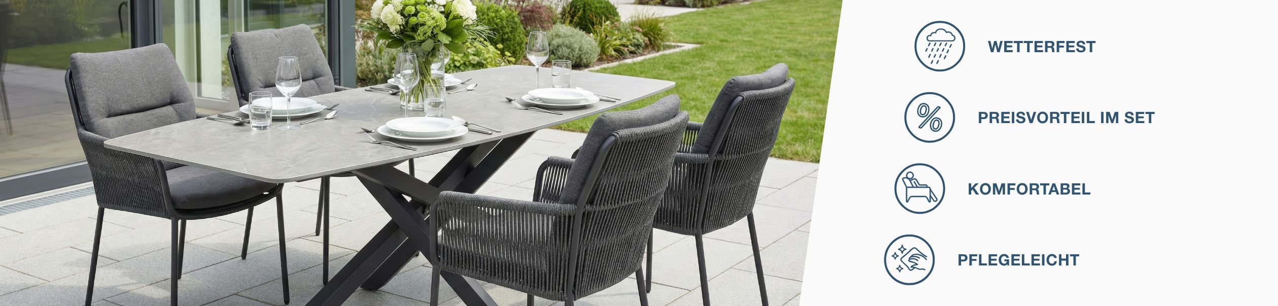 Die Stuhl- und Sesselsets sind perfekt, wenn Sie Ihren Outdoor-Essplatz schnell komplett machen möchten – und dabei alles optisch schön zusammenpassen soll. Je nach Variante bekommen Sie praktische Stapel- oder Klappstühle oder komfortable Positionsstühle mit verstellbarer Rückenlehne. Die Materialien sind für draußen gemacht, die Gestelle stabil, und auf den Sitzflächen bleibt man auch bei längeren Abenden gerne sitzen. So haben Sie im Handumdrehen genug Plätze für Familie und Gäste – flexibel und unkompliziert.