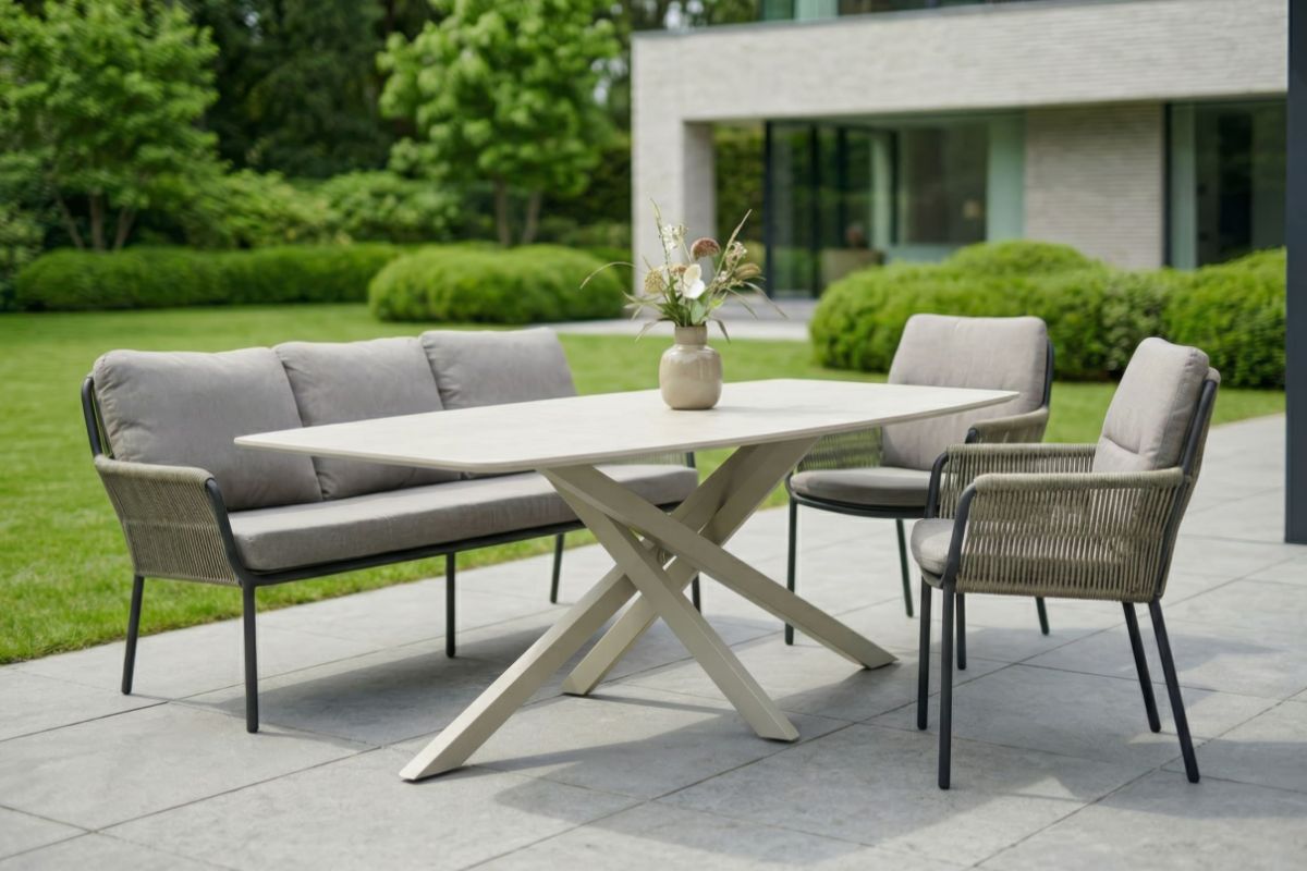 Die Outdoor Esstische von LC Garden überzeugen durch ihre klare Linienführung und eine großzügige Gestaltung, die viel Platz für gesellige Stunden bietet. Ob mit edlen Oberflächen in Stein-Optik, warmem Teakholz oder modernen Glasplatten – die Tische fügen sich harmonisch in jede Gartenlandschaft ein und schaffen einen stilvollen Mittelpunkt für Ihre Terrasse. Die durchdachte Konstruktion sorgt für optimale Beinfreiheit, sodass gemeinsame Mahlzeiten im Freien zu einem komfortablen Erlebnis für Familie und Gäste werden.