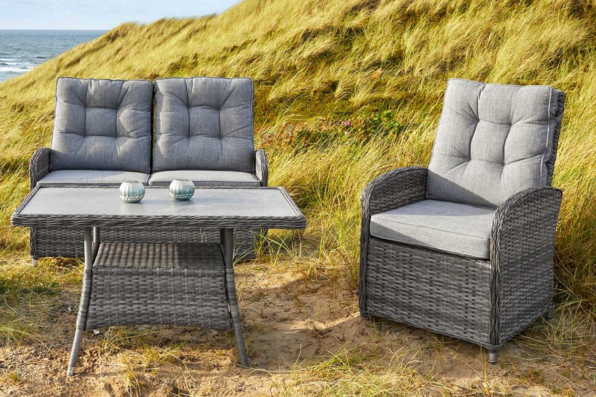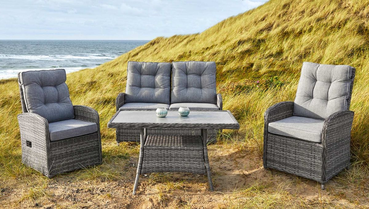 LC Garden »Bailado« Lounge Set 4-tlg. omega grau aus handgeflochtenem Polyrattan inkl. Sitzkissen
