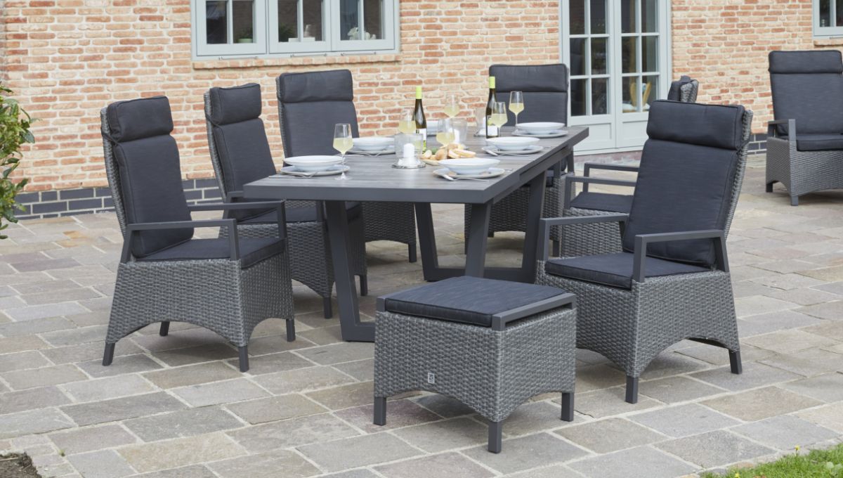 In puncto Belastbarkeit und Alltagstauglichkeit setzt die Keramo-Serie Maßstäbe. Die verwendeten Keramikplatten sind nicht nur ein optisches Highlight, sondern auch extrem hitzebeständig, kratzfest und unempfindlich gegenüber Flecken – ideal für unbeschwerte Grillabende. Das stabile Gestell aus pulverbeschichtetem Aluminium garantiert eine absolute Rostfreiheit und sorgt für eine hohe Standfestigkeit bei gleichzeitig geringem Gewicht. Dank der pflegeleichten Materialien lässt sich die gesamte Gruppe mit minimalem Aufwand reinigen. Mit Keramo investieren Sie in eine langlebige Outdoor-Lösung, die auch nach Jahren intensiver Nutzung ihre erstklassige Optik behält.
