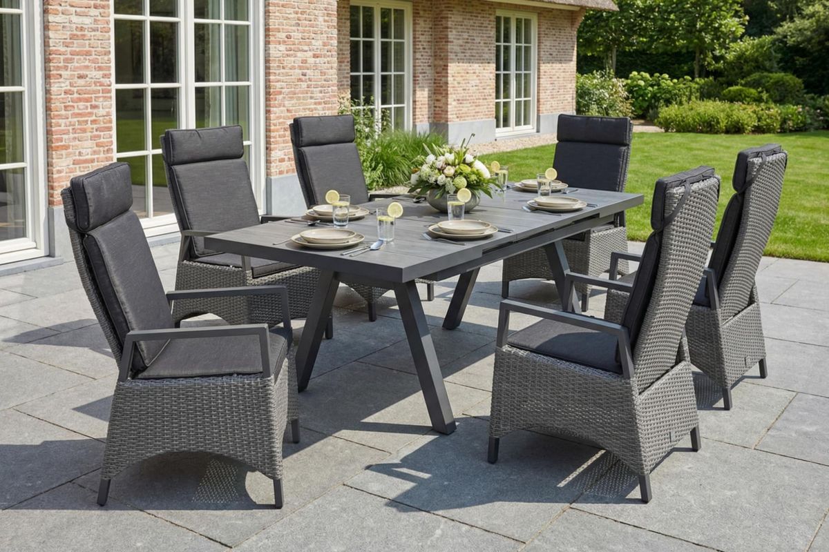 LC Garden »Keramo« Gartenset Anthrazit Esstisch 160/210x100cm ausziehbar Aluminium/Keramik grau + 6 Gartenstühle verstellbar
