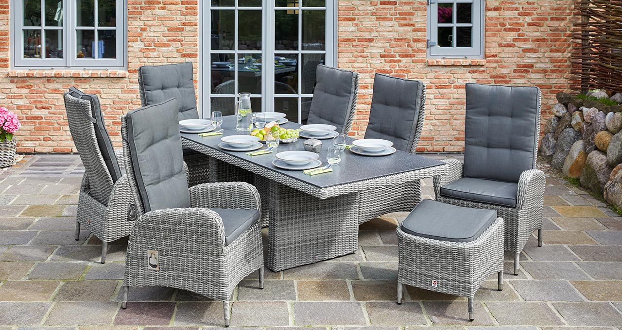 Die Gartenstühle der Reihe besitzen stufenlos verstellbare Rückenlehnen für eine optimale Sitzposition. Sämtliche Möbelstücke haben spezielle Schutzkappen an den Füßen der Produkte und sind daher hervorragend für den Einsatz auf empfindlichen Bodenbelägen geeignet.