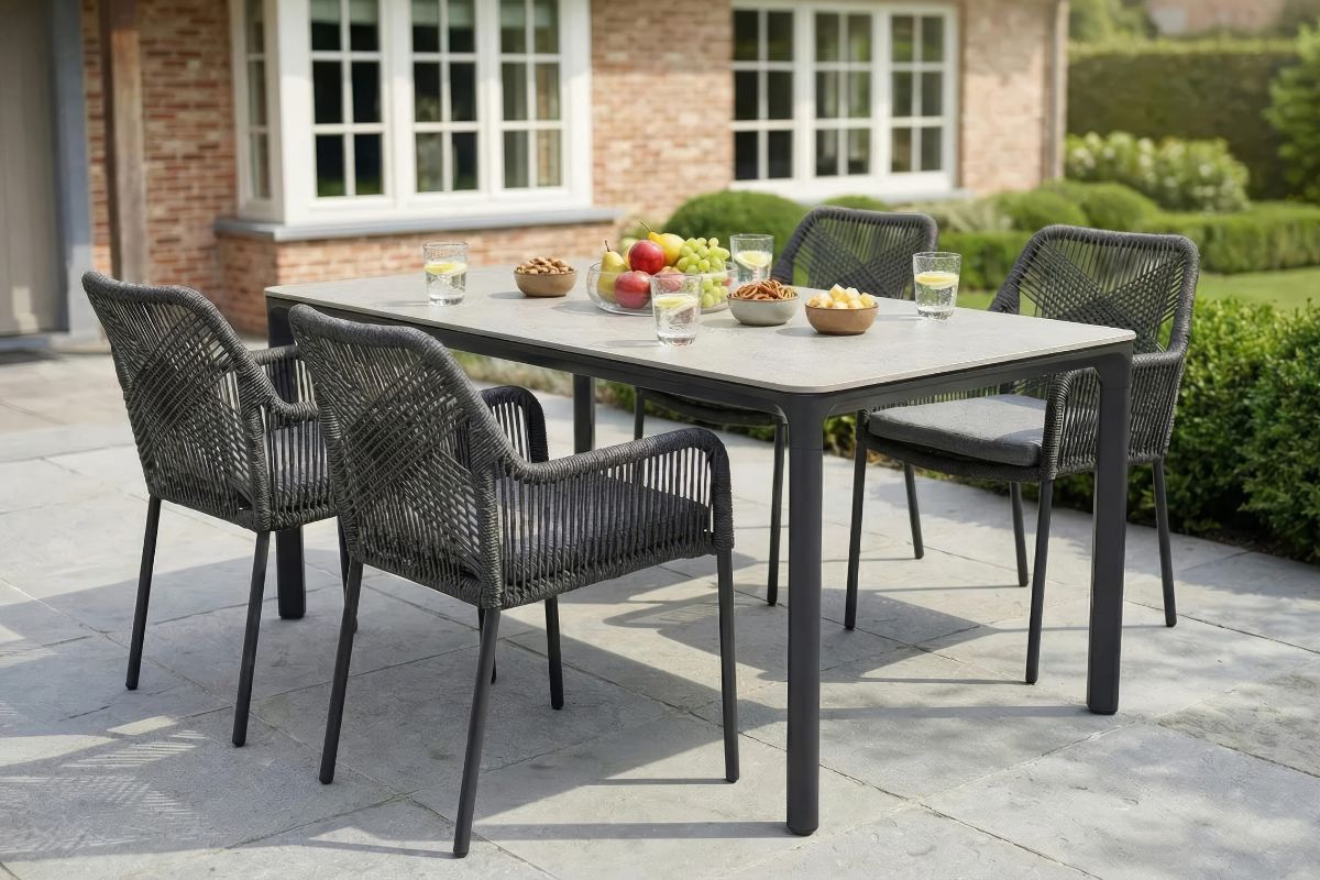 LC Garden »Stilo« Gartenset Gartentisch 180cm Sintered Stone + 4 Gartenstühle Rope Anthrazit