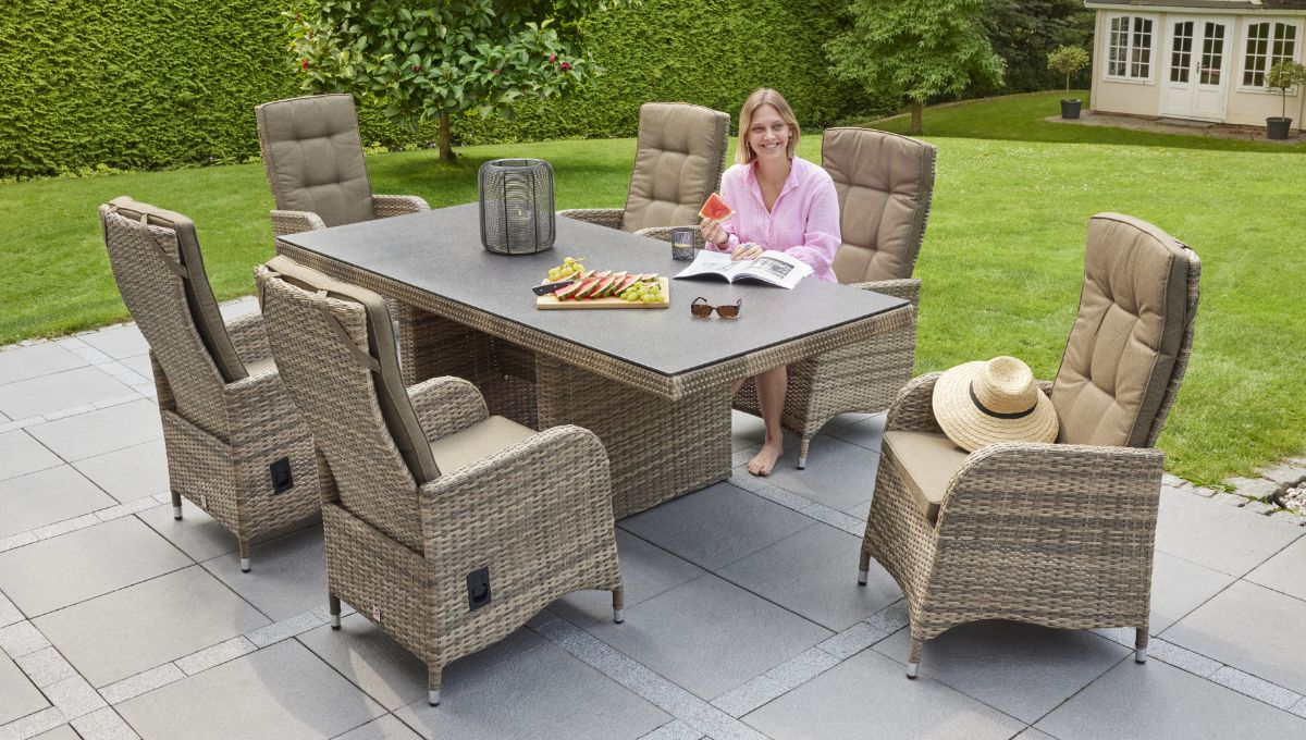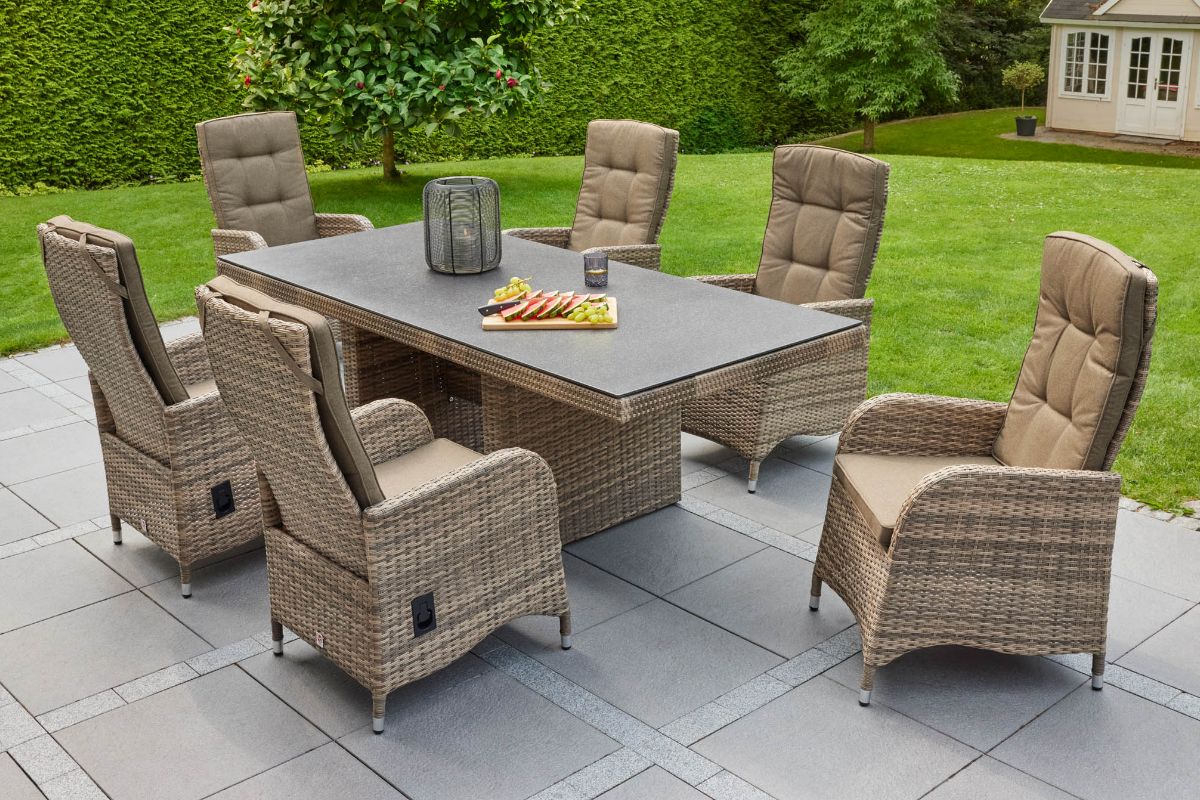 LC Garden »Turin« Gartenset natur 200cm Esstisch + 6 Positionsstühle Sitzgruppe Gartenmöbelset