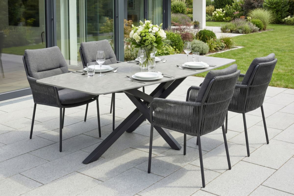 LC Garden 4er Set »Ottawa« Gartenstuhl grau/anthrazit Rope/Textilen/Aluminium Stapelstuhl