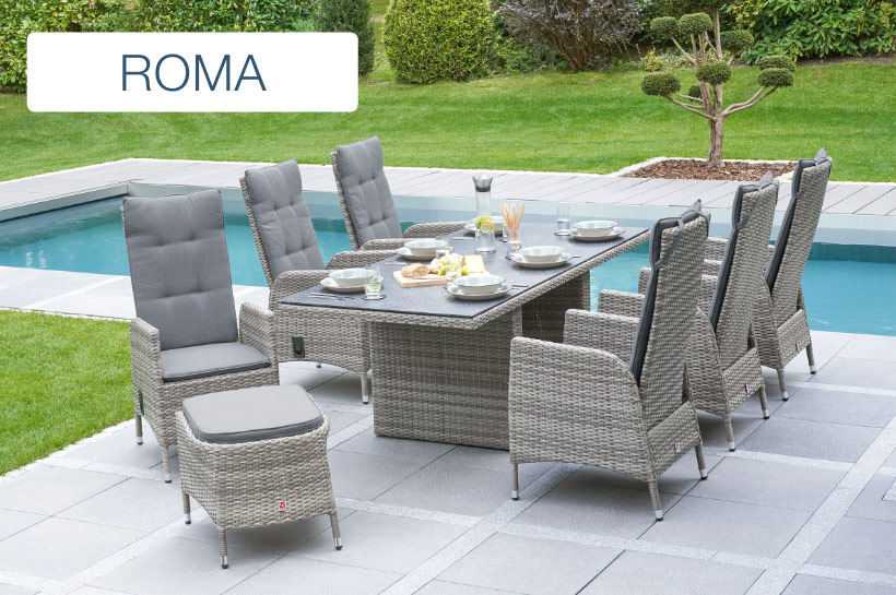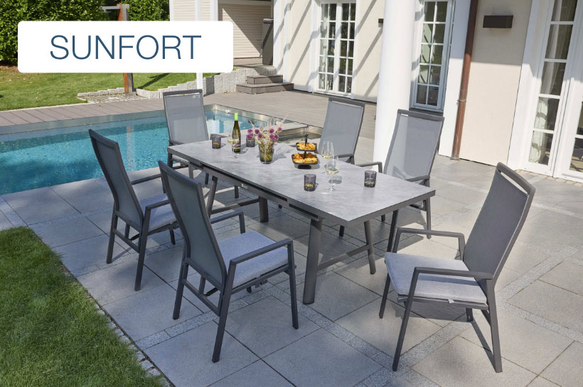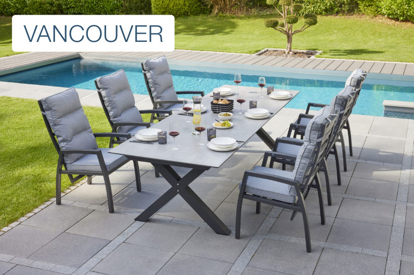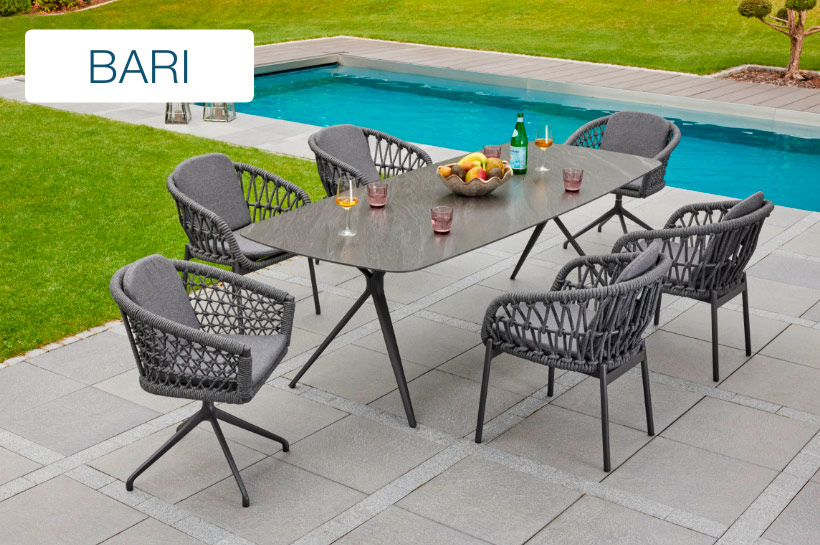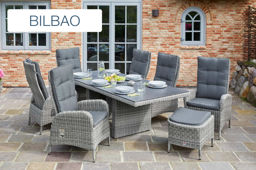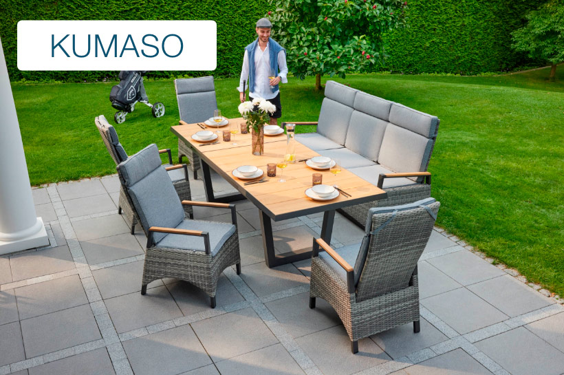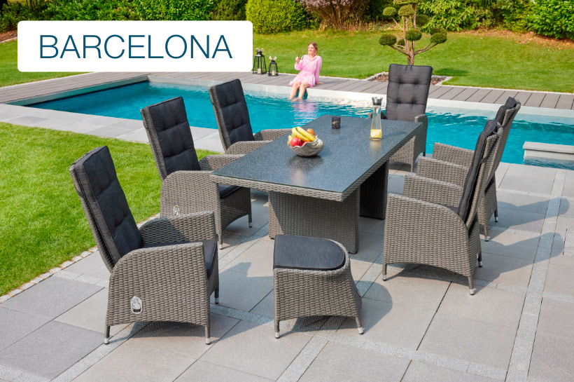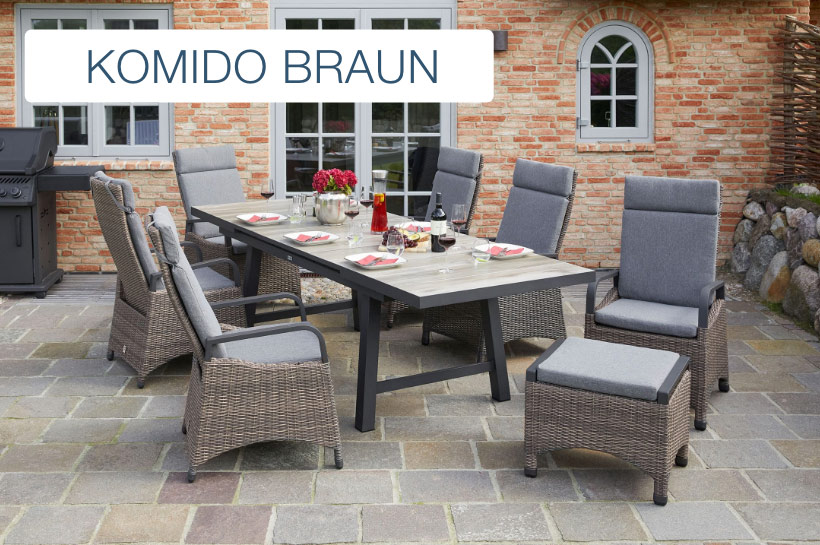 Mit weichen, hochwertigen Polstern und ergonomischem Design bieten unsere Loungemöbel eine perfekte Balance aus Komfort und Stil. Lehnen Sie sich zurück, lassen Sie die Seele baumeln und genießen Sie gesellige Stunden mit Familie und Freunden im Freien.