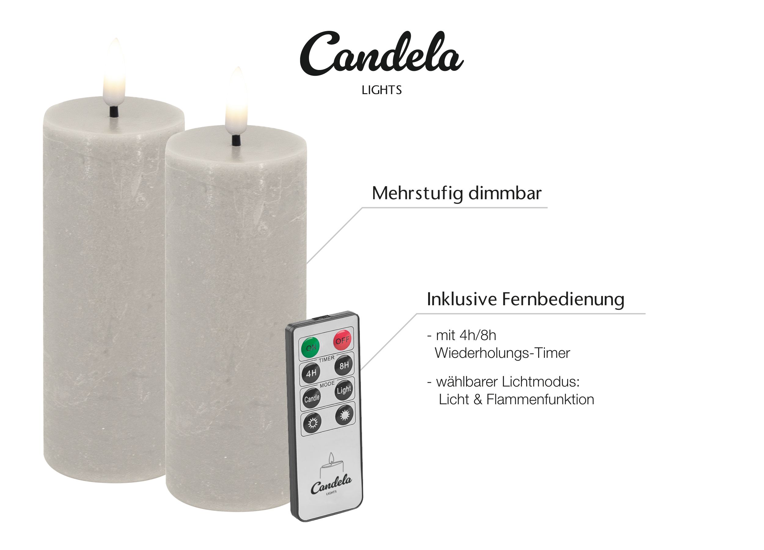 Candela Lights by LC Home sind hochwertige und handgefertigte Echtwachs LED Kerzen, die vor allem durch Ihre Qualität und Funktionalität zu beeindrucken wissen. Diese Echtwachskerzen mit LED Licht sind eine innovative und sichere Alternative zu herkömmlichen Wachskerzen und wirken so realistisch, dass die praktisch nicht von normal brennenden Kerzen zu unterscheiden sind.
