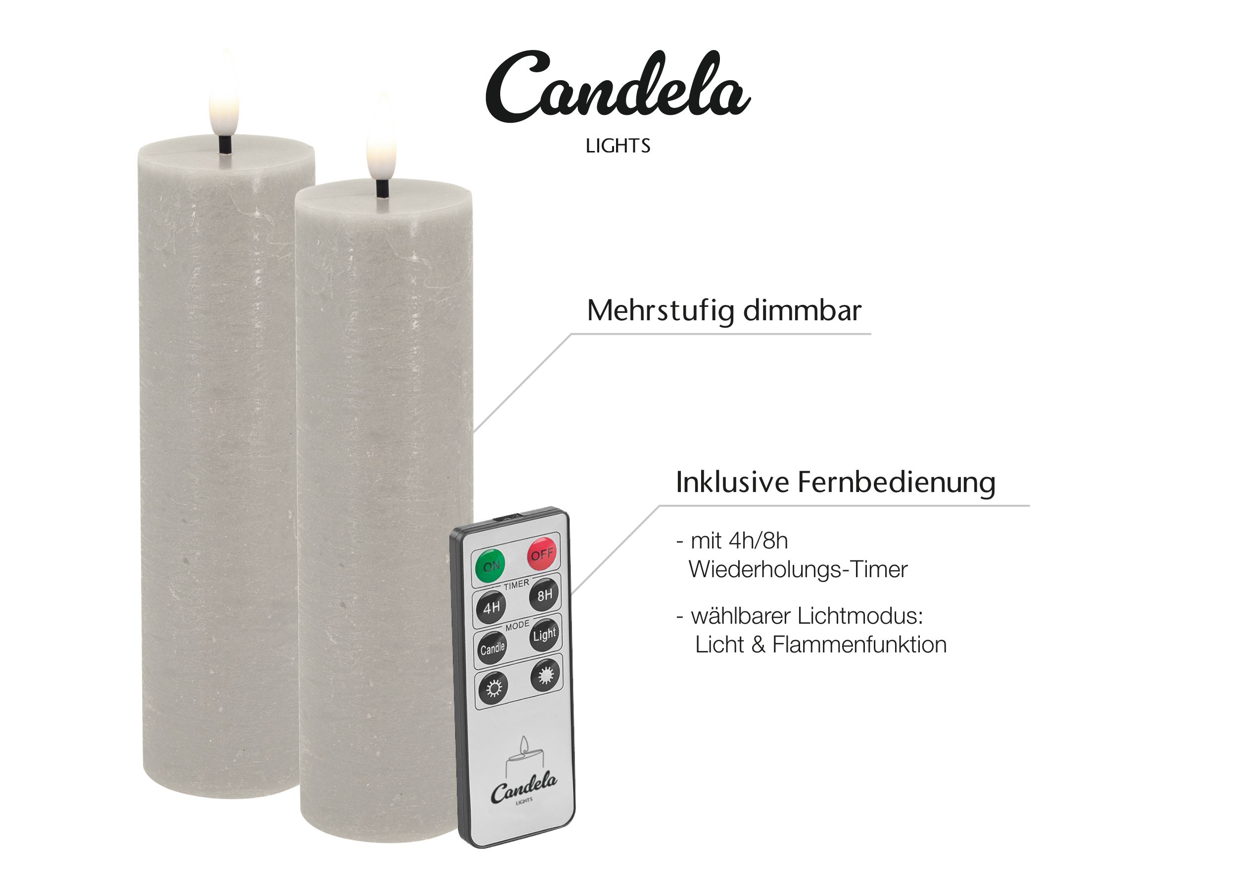 Candela Lights by LC Home sind hochwertige und handgefertigte Echtwachs LED Kerzen, die vor allem durch Ihre Qualität und Funktionalität zu beeindrucken wissen. Diese Echtwachskerzen mit LED Licht sind eine innovative und sichere Alternative zu herkömmlichen Wachskerzen und wirken so realistisch, dass die praktisch nicht von normal brennenden Kerzen zu unterscheiden sind.