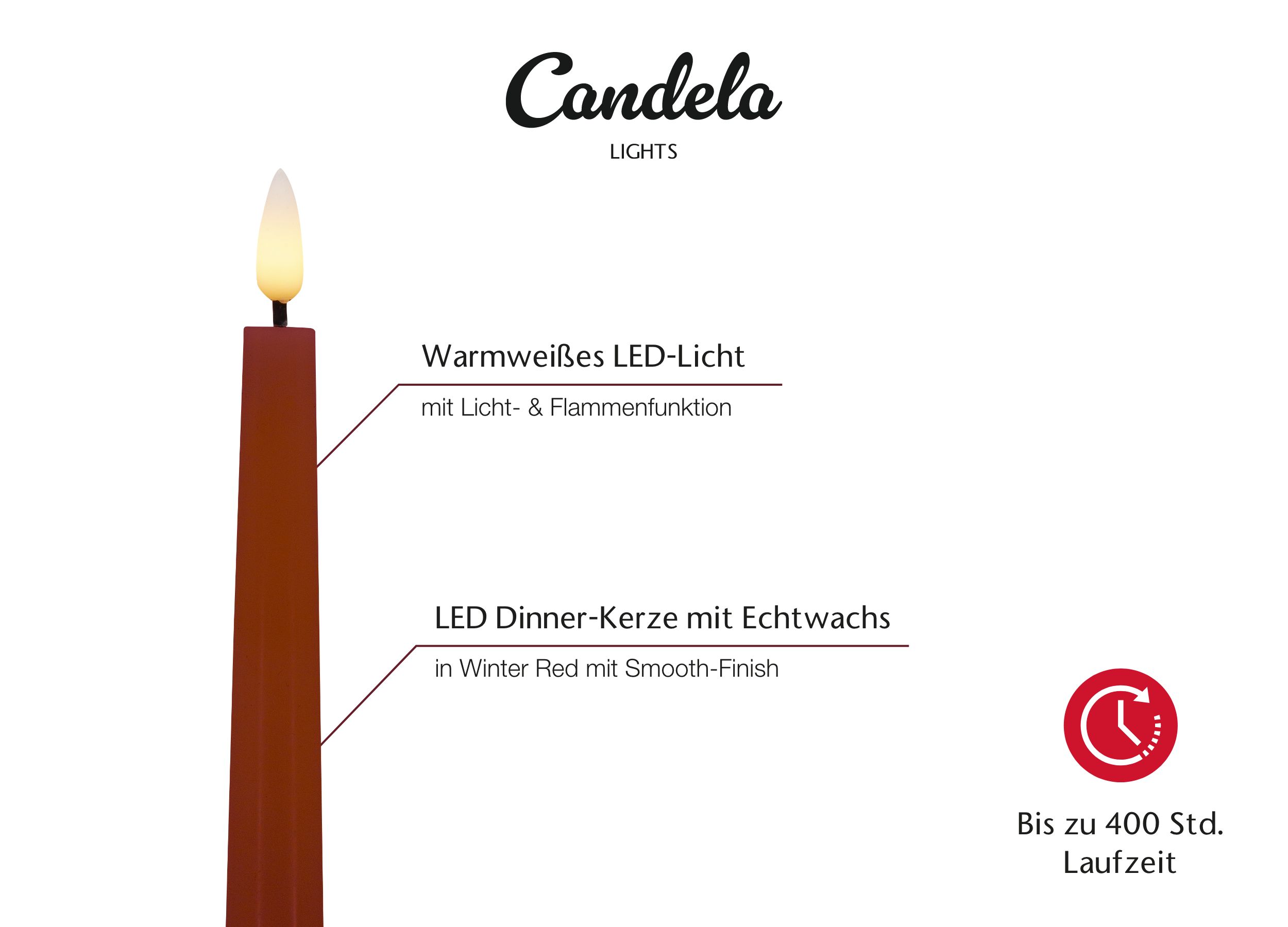 Candela Lights LED Echtwachs Stabkerze 4er Set Winter rot H:26,5xØ2,2cm mit Timerfunktion & Fernbedienung Dinnerkerzen dimmbar Tafelkerzen