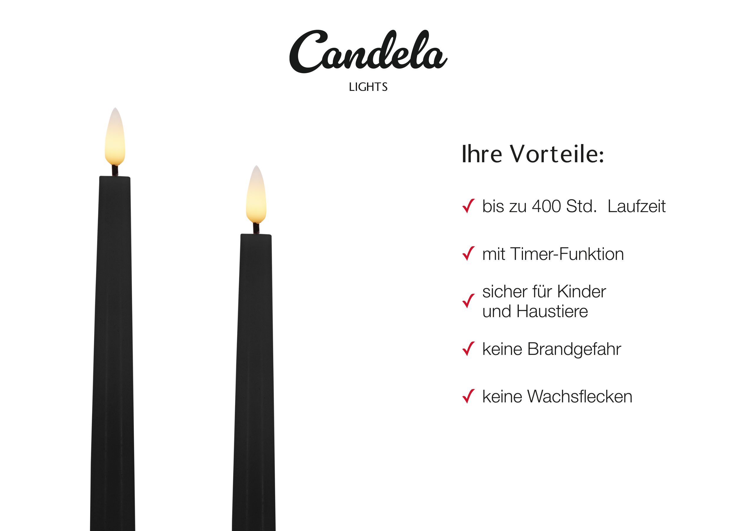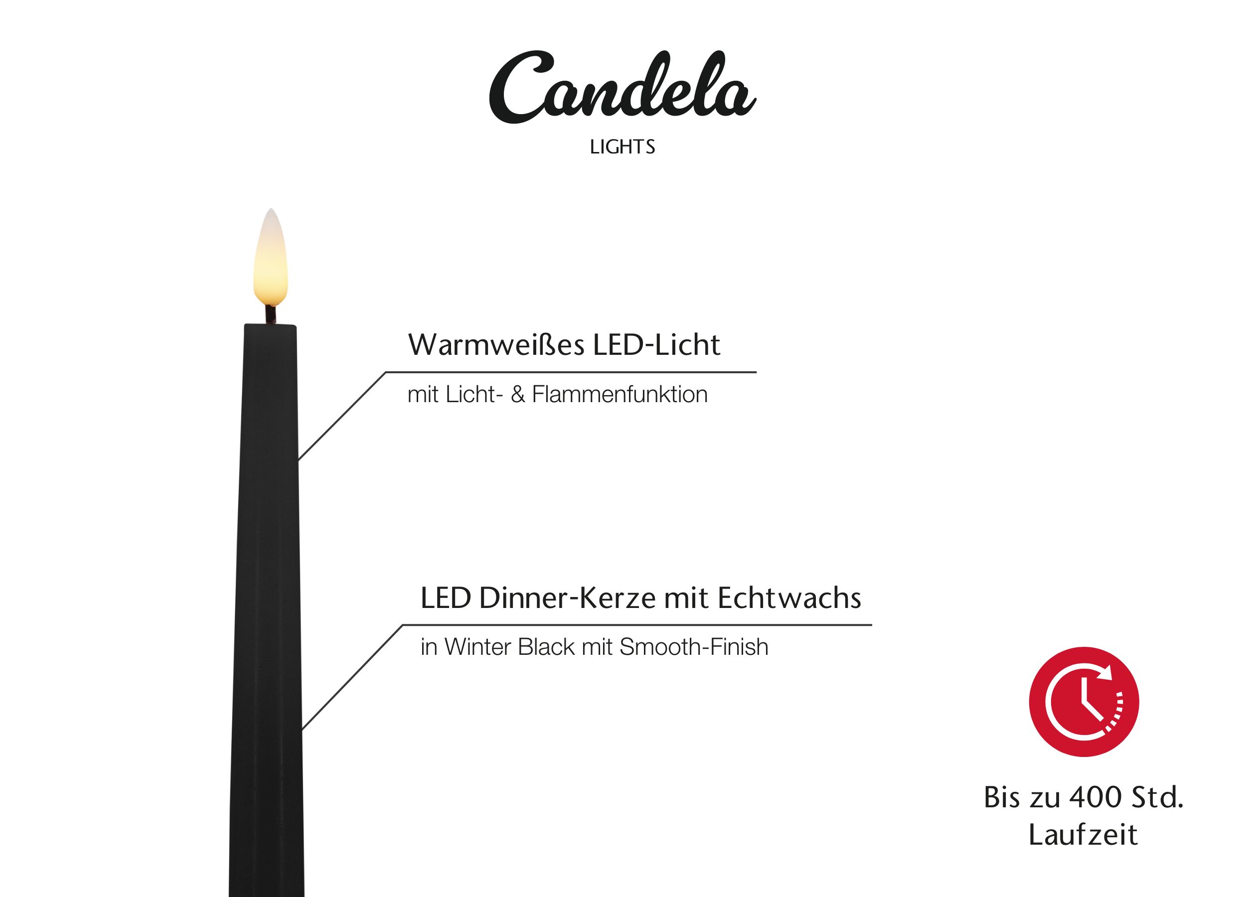 Candela Lights LED Echtwachs Stabkerze 4er Set Winter schwarz H:26,5xØ2,2 cm, mit Timerfunktion & Fernbedienung Dinnerkerzen dimmbar Tafelkerzen
