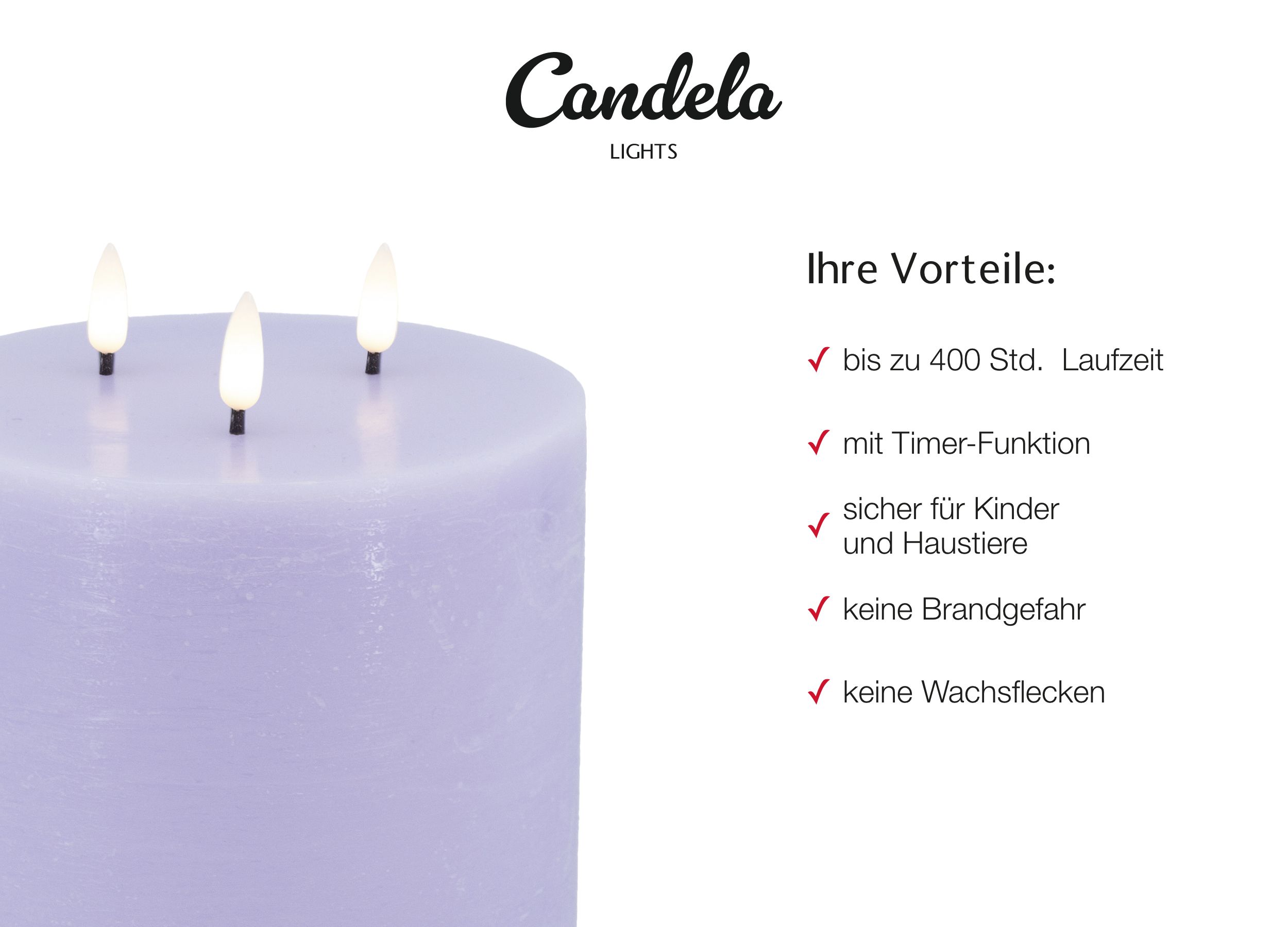 - Sicherheit: keine Brandgefahr, ideal für Haushalte mit Haustieren und kleinen Kindern