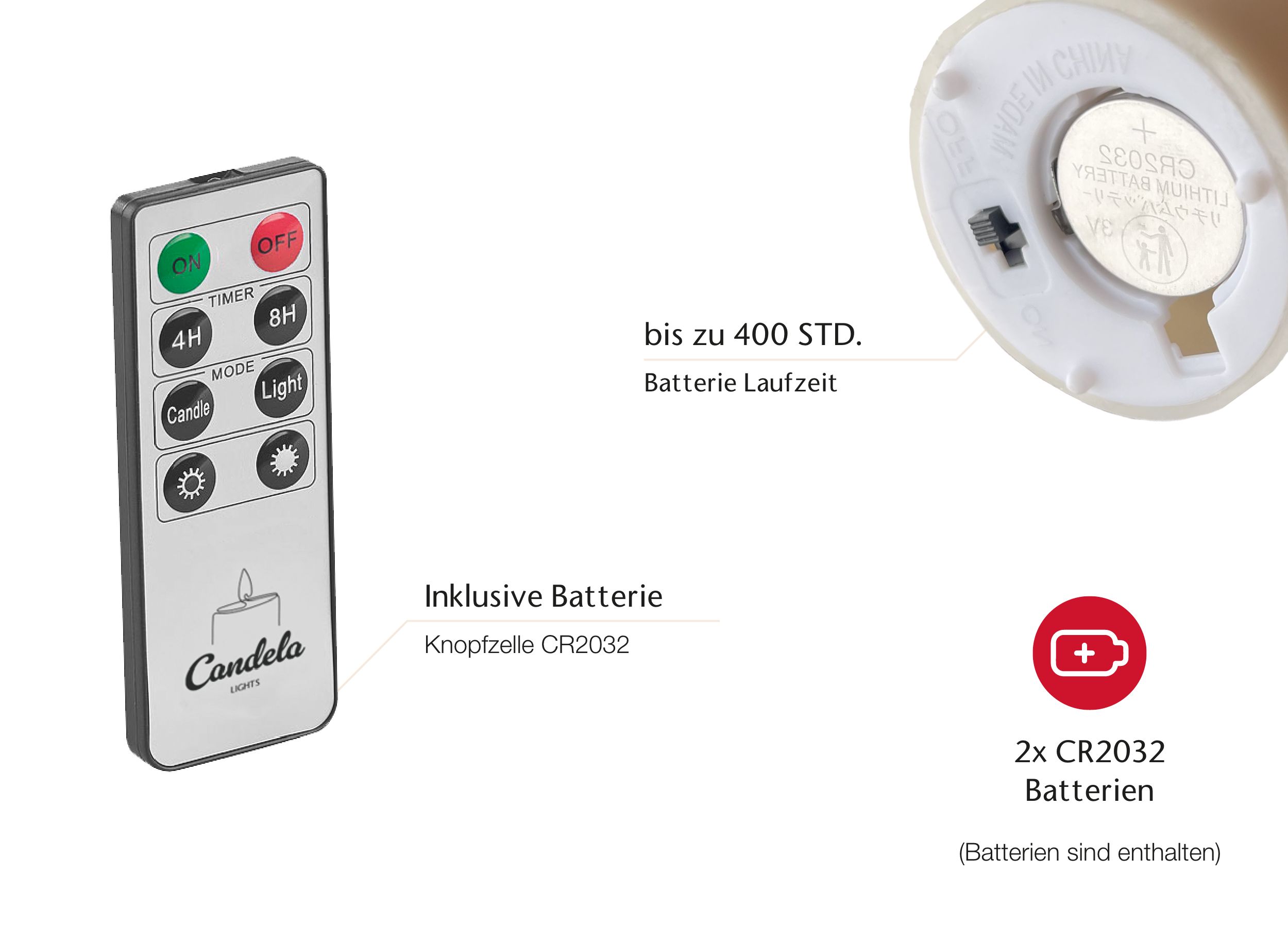 - Fernbedienung: inklusive Fernbedienung, Kerzen bequem ein- und ausschalten und Helligkeit anpassen (Batterien inklusive)