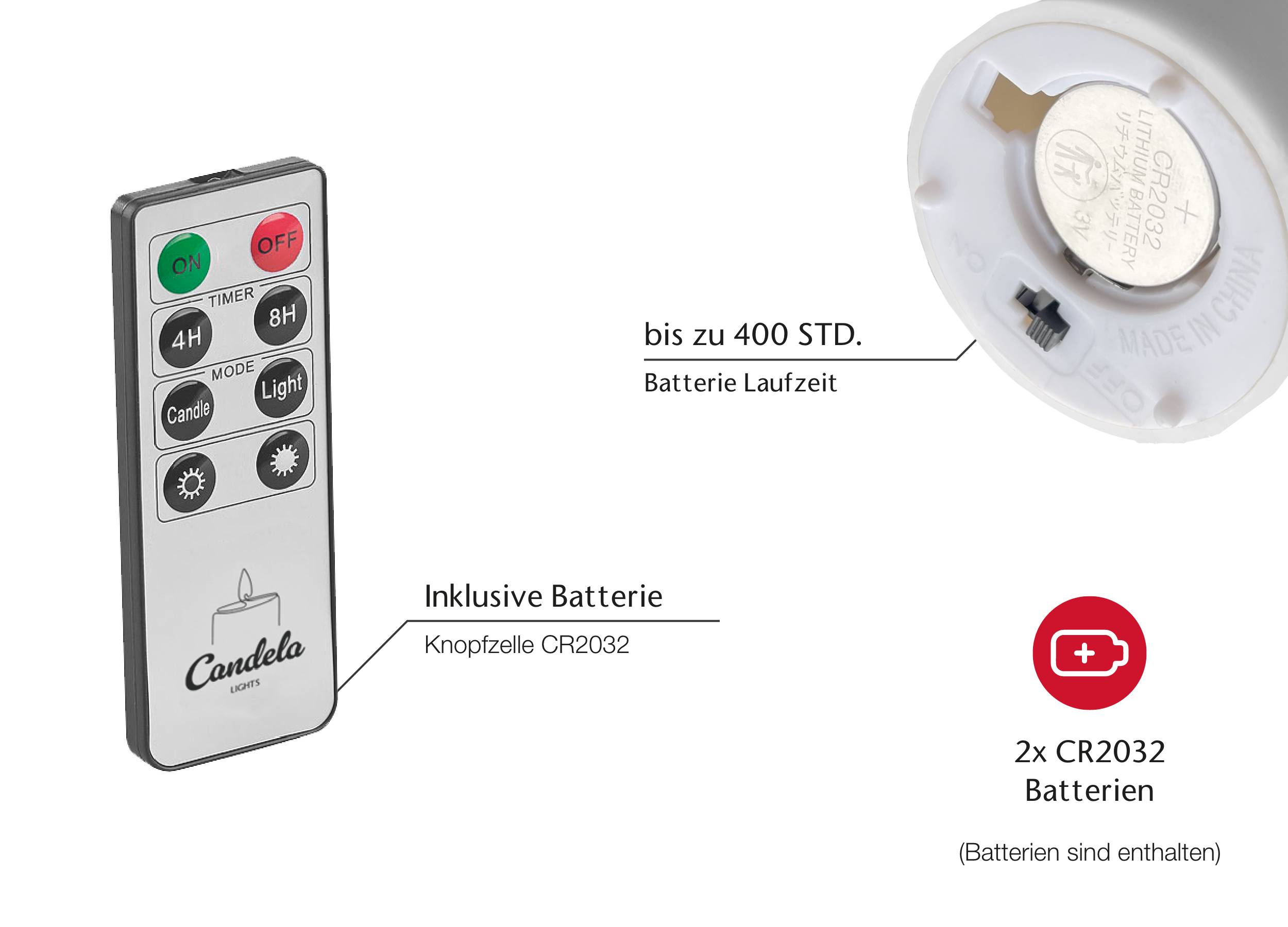 - Fernbedienung: inklusive Fernbedienung, Kerzen bequem ein- und ausschalten und Helligkeit anpassen (Batterien inklusive)