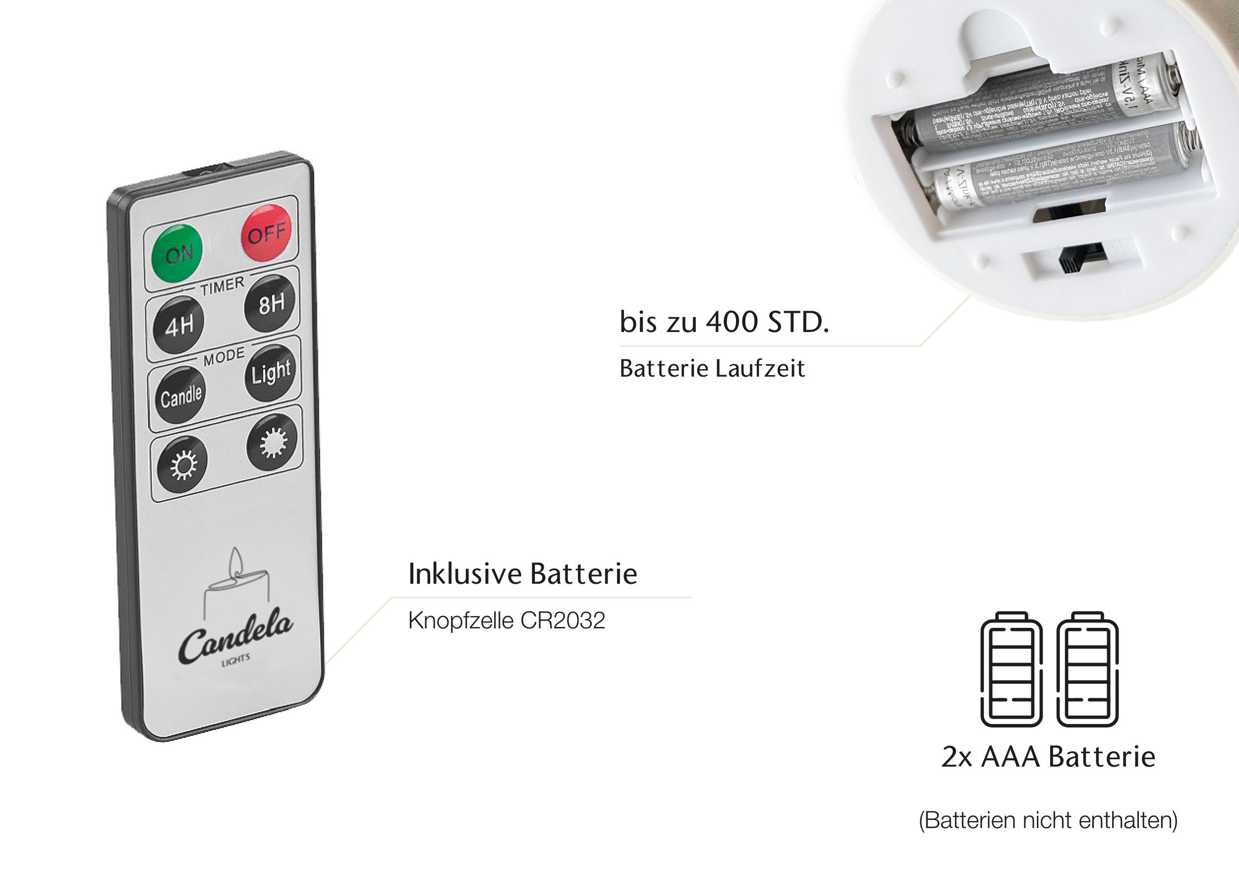 - Fernbedienung: inklusive Fernbedienung, Kerzen bequem ein- und ausschalten und Helligkeit anpassen (Batterien inklusive)