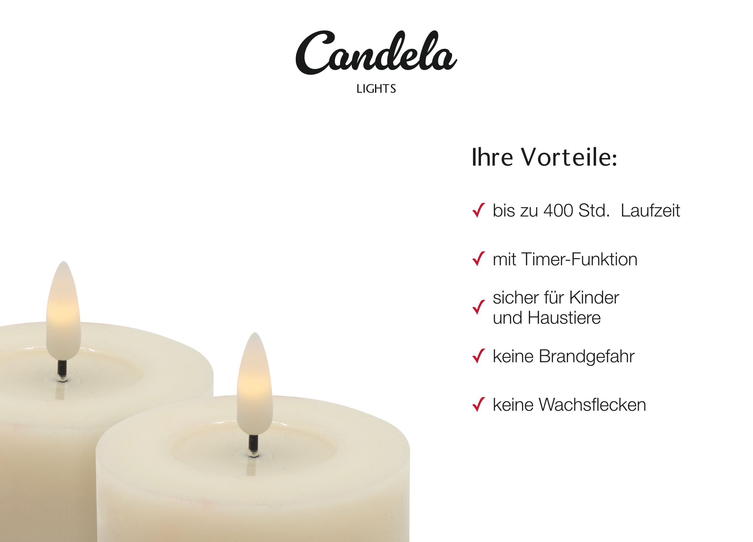 Candela Lights by LC Home sind hochwertige LED Kerzen, die vor allem durch Ihre Qualität und Funktionalität zu beeindrucken wissen.