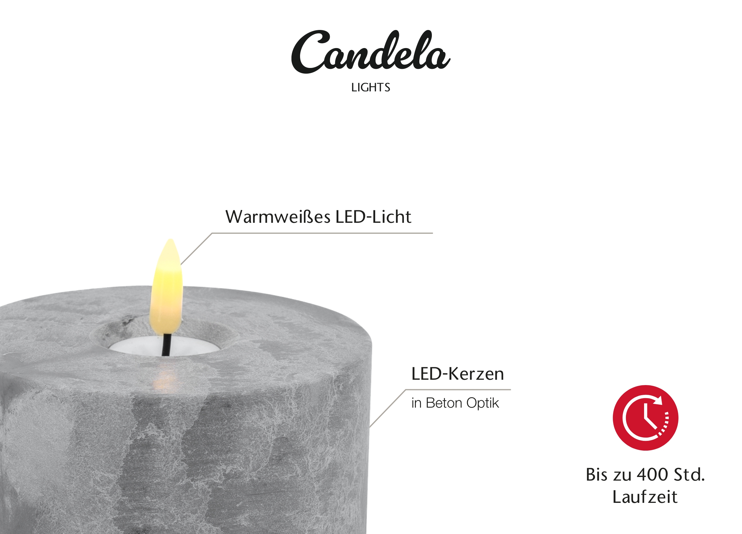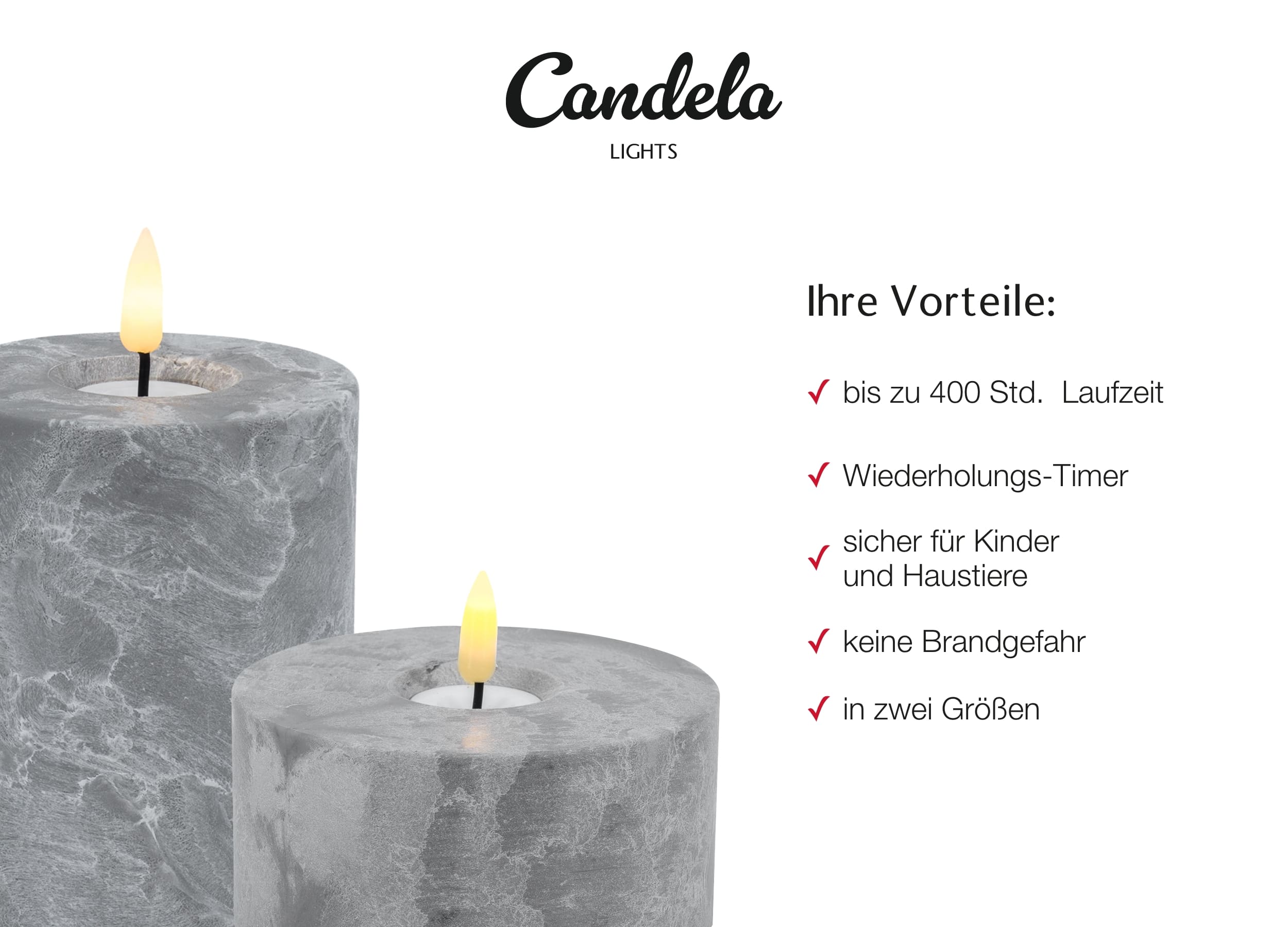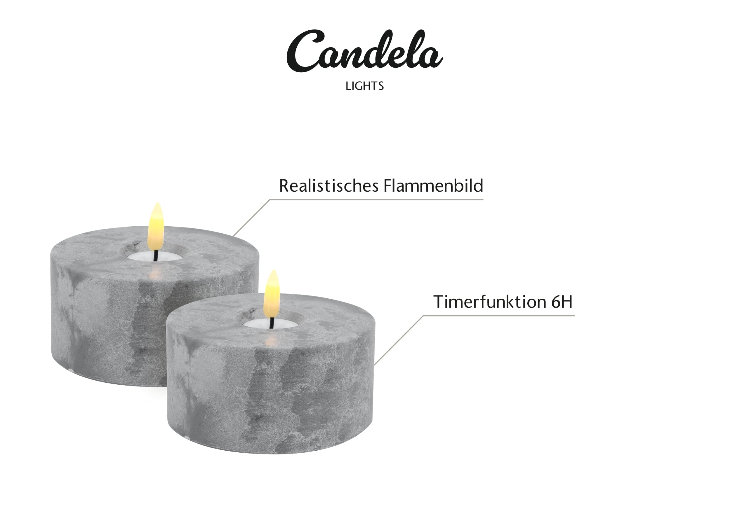 Candela Lights LED Kerzen 2er Set Ø10x5cm Betonoptik mit Timerfunktion Flammenlose flackernde LED-Kerze