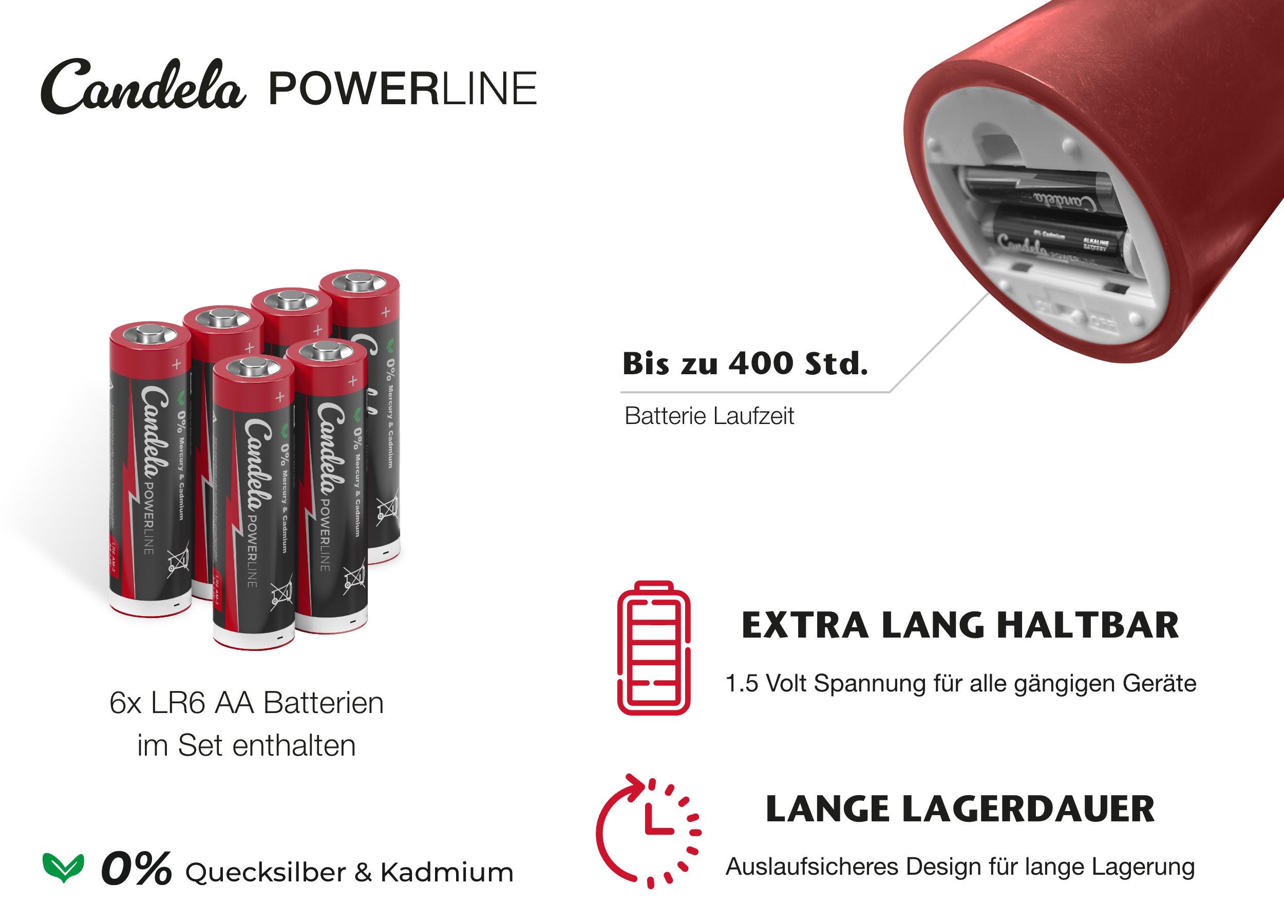 Sie benötigen für den Betrieb pro Kerze 2xAA Batterien. Bitte beachten Sie unsere Batterie-, Entsorgungs- sowie Elektrohinweise für die Produkte von LC Home.