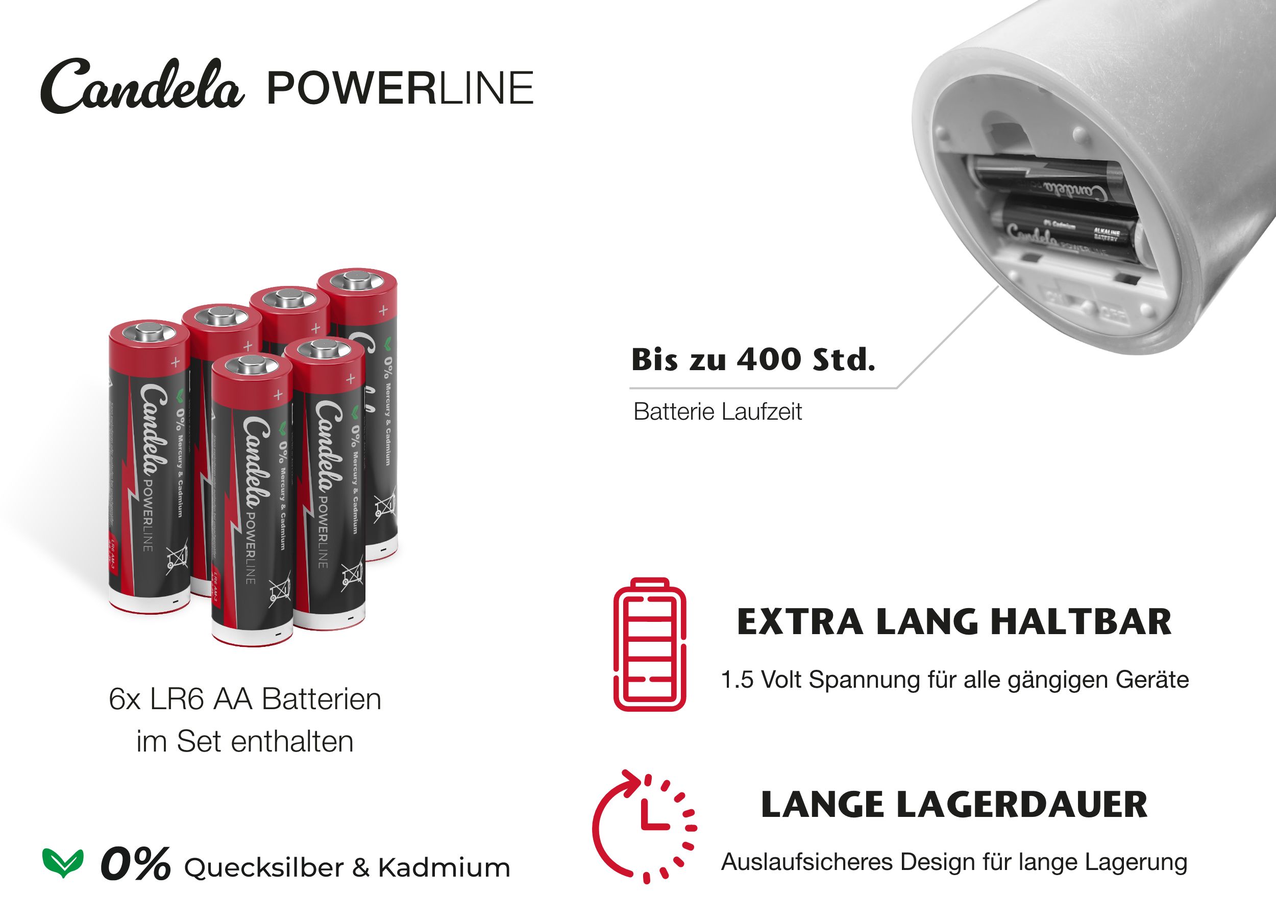 Sie benötigen für den Betrieb pro Kerze 2xAA Batterien. Bitte beachten Sie unsere Batterie-, Entsorgungs- sowie Elektrohinweise für die Produkte von LC Home.