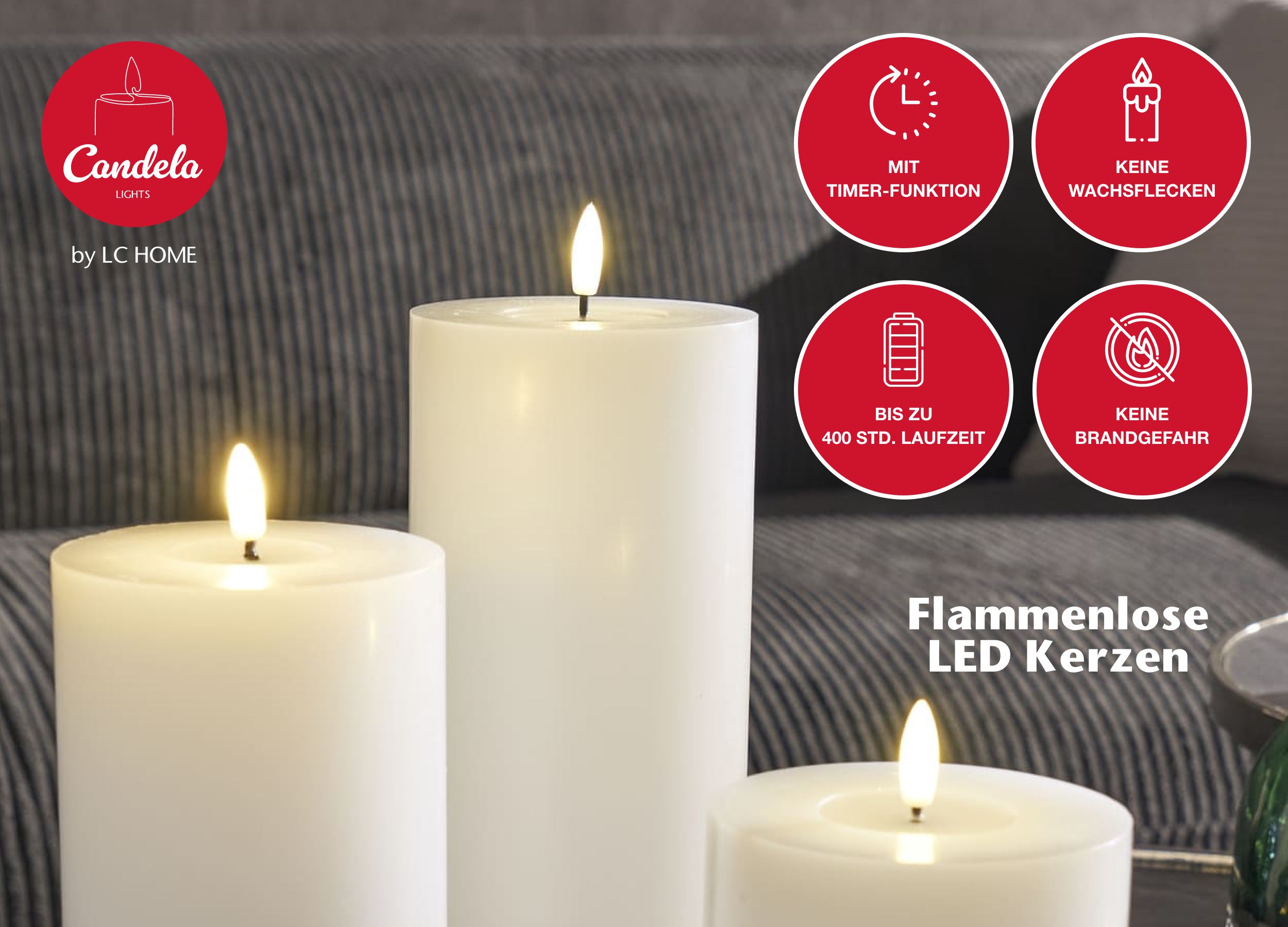 Candela Lights by LC Home sind hochwertige und handgefertigte Echtwachs LED Kerzen, die vor allem durch Ihre Qualität und Funktionalität zu beeindrucken wissen. Diese Echtwachskerzen mit LED Licht sind eine innovative und sichere Alternative zu herkömmlichen Wachskerzen und wirken so realistisch, dass die praktisch nicht von normal brennenden Kerzen zu unterscheiden sind.