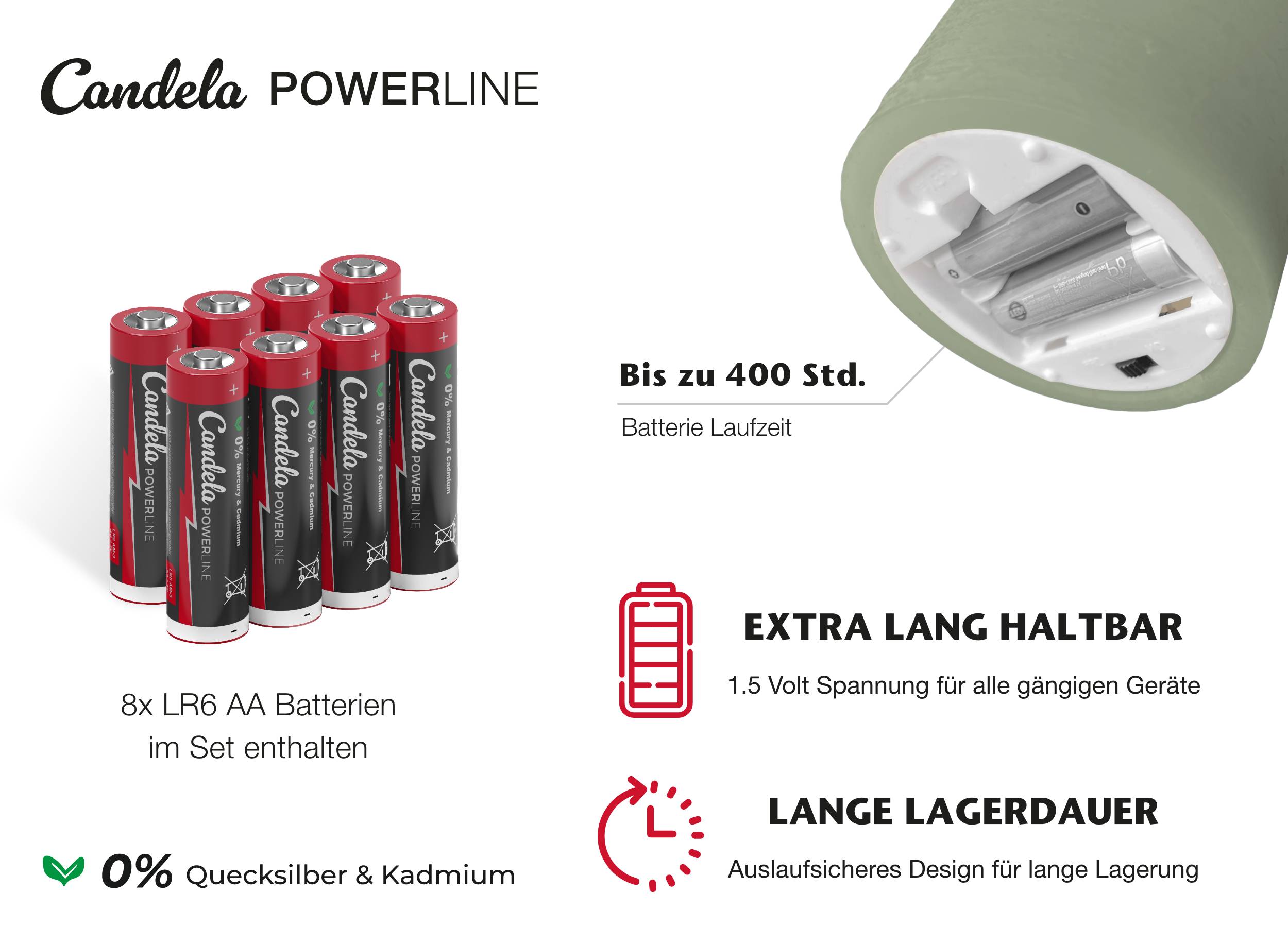 Sie benötigen für den Betrieb pro Kerze 2xAA Batterien. Bitte beachten Sie unsere Batterie-, Entsorgungs- sowie Elektrohinweise für die Produkte von LC Home.