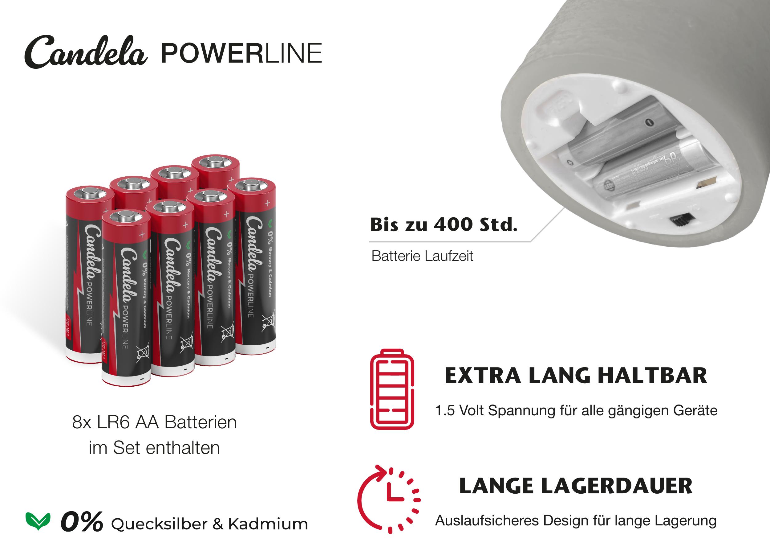 Sie benötigen für den Betrieb pro Kerze 2xAA Batterien. Bitte beachten Sie unsere Batterie-, Entsorgungs- sowie Elektrohinweise für die Produkte von LC Home.