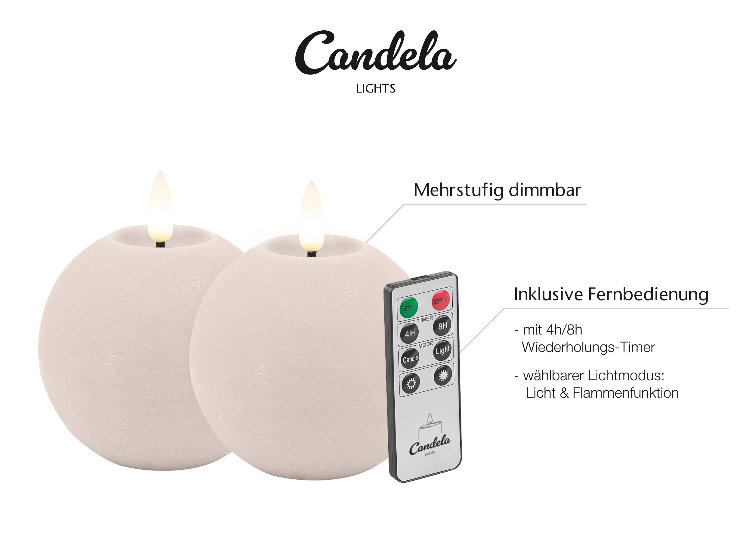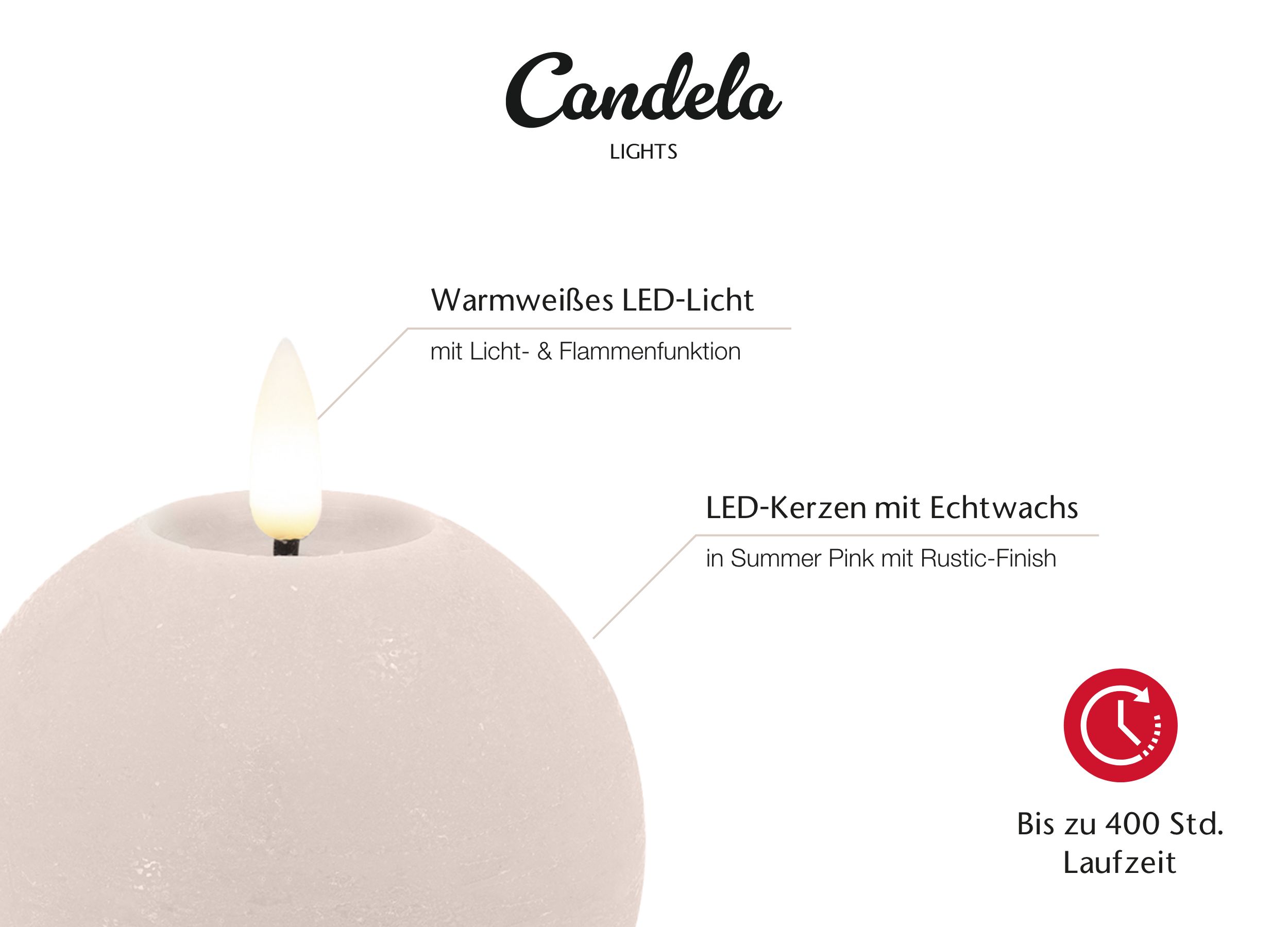 Candela Lights LED Kerzen 4er Set Ø8x7cm Summer Pink rustic Kugelkerze Echtwachs mit Fernbedienung & Timerfunktion Flammenlose flackernde LED-Kerze mehrstufig dimmbar