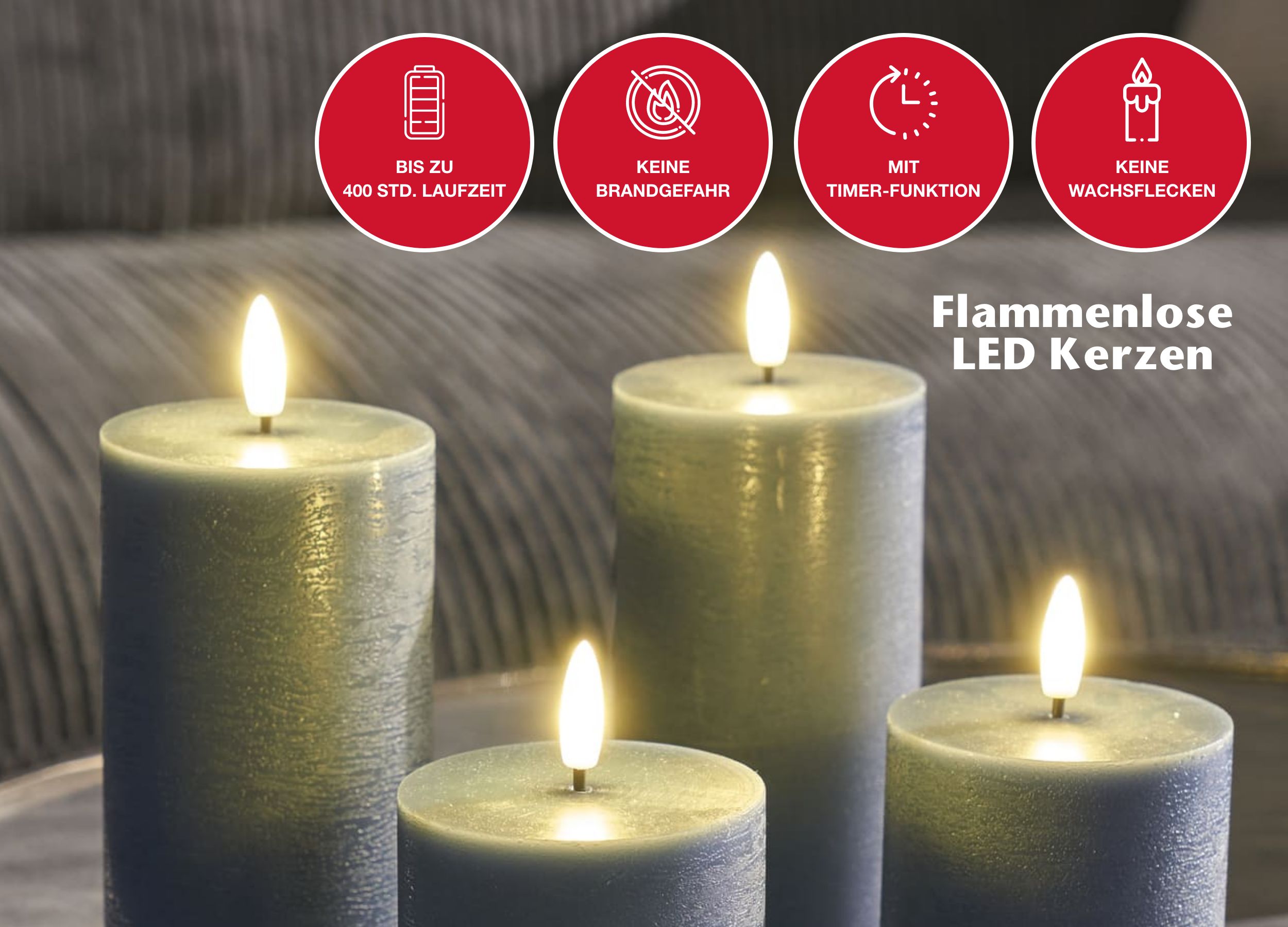 - Sicherheit: keine Brandgefahr, ideal für Haushalte mit Haustieren und kleinen Kindern