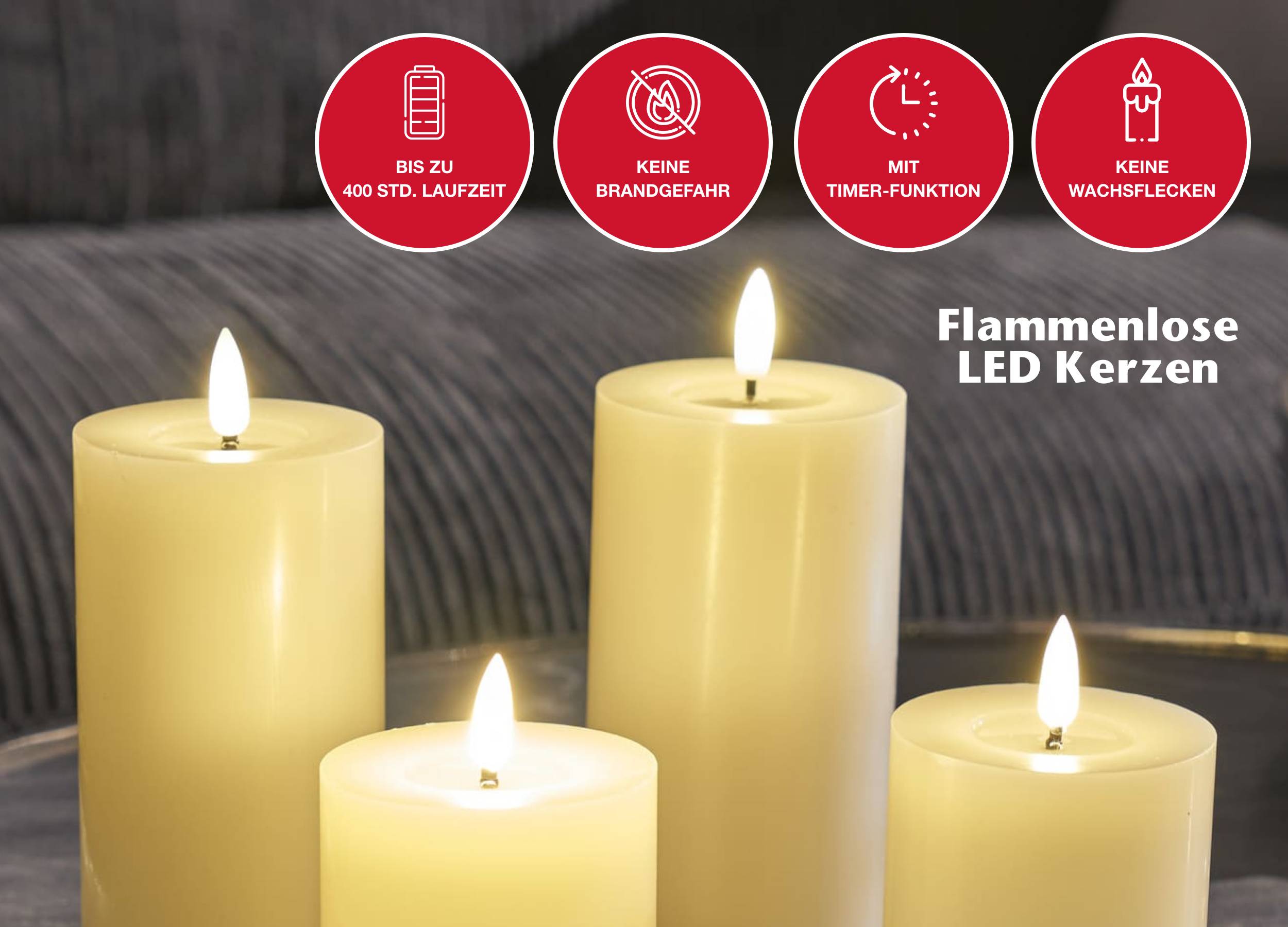 Dank des in sorgfältiger Handarbeit gearbeiteten Echtwachsmantels, ist jede LED-Kerze ein Unikat, welches Ihre Räume auf besondere Weise beleuchten wird. Die Kombination von moderner LED-Technologie und handgefertigtem Echtwachs schafft eine warme und einladende Atmosphäre, ohne dabei auf die Sicherheit und Bequemlichkeit einer LED-Beleuchtung zu verzichten. Diese LED Kerzen wirken so realistisch, sie sind praktisch fast nicht von normal brennenden Kerzen zu unterscheiden.