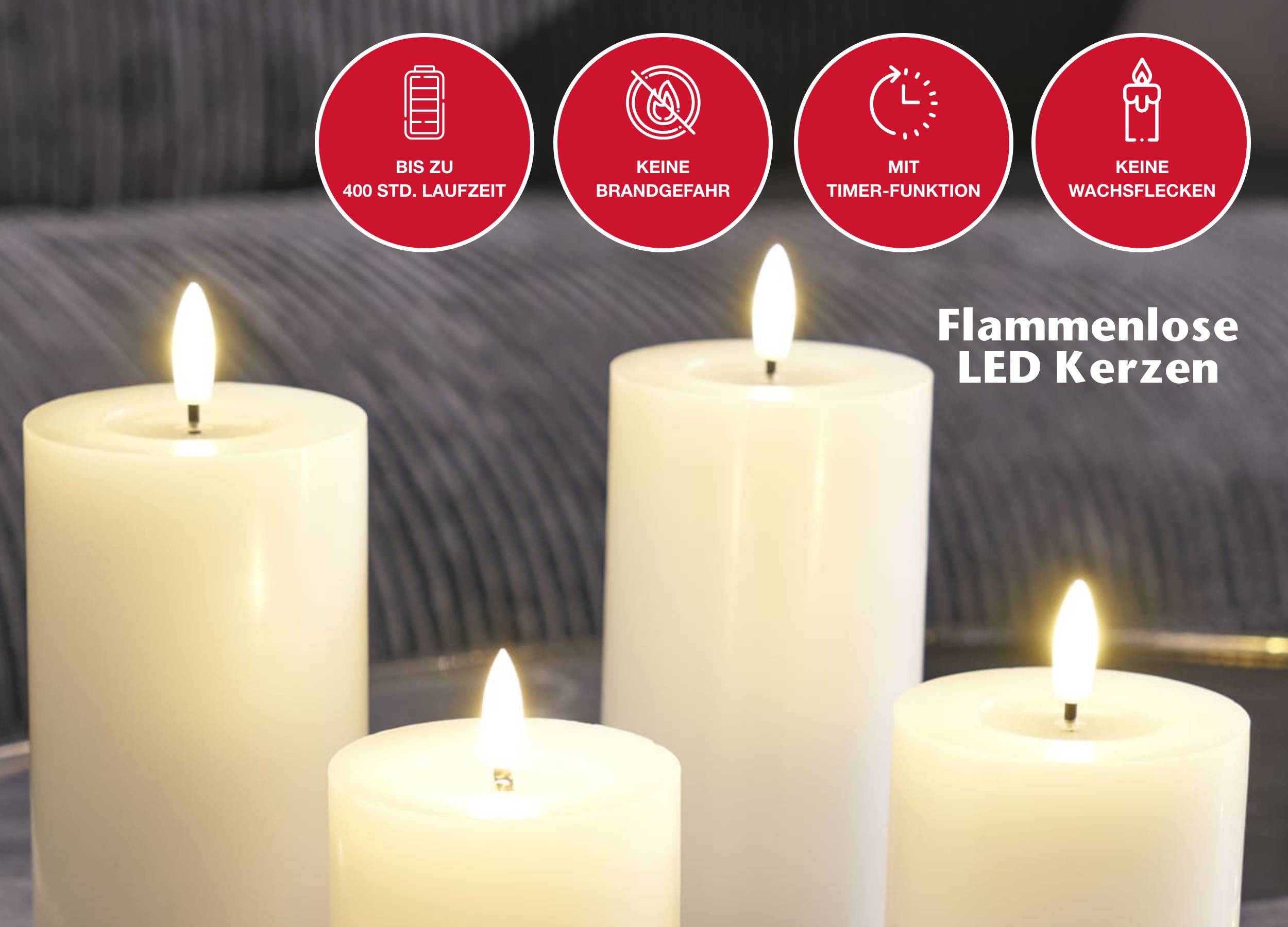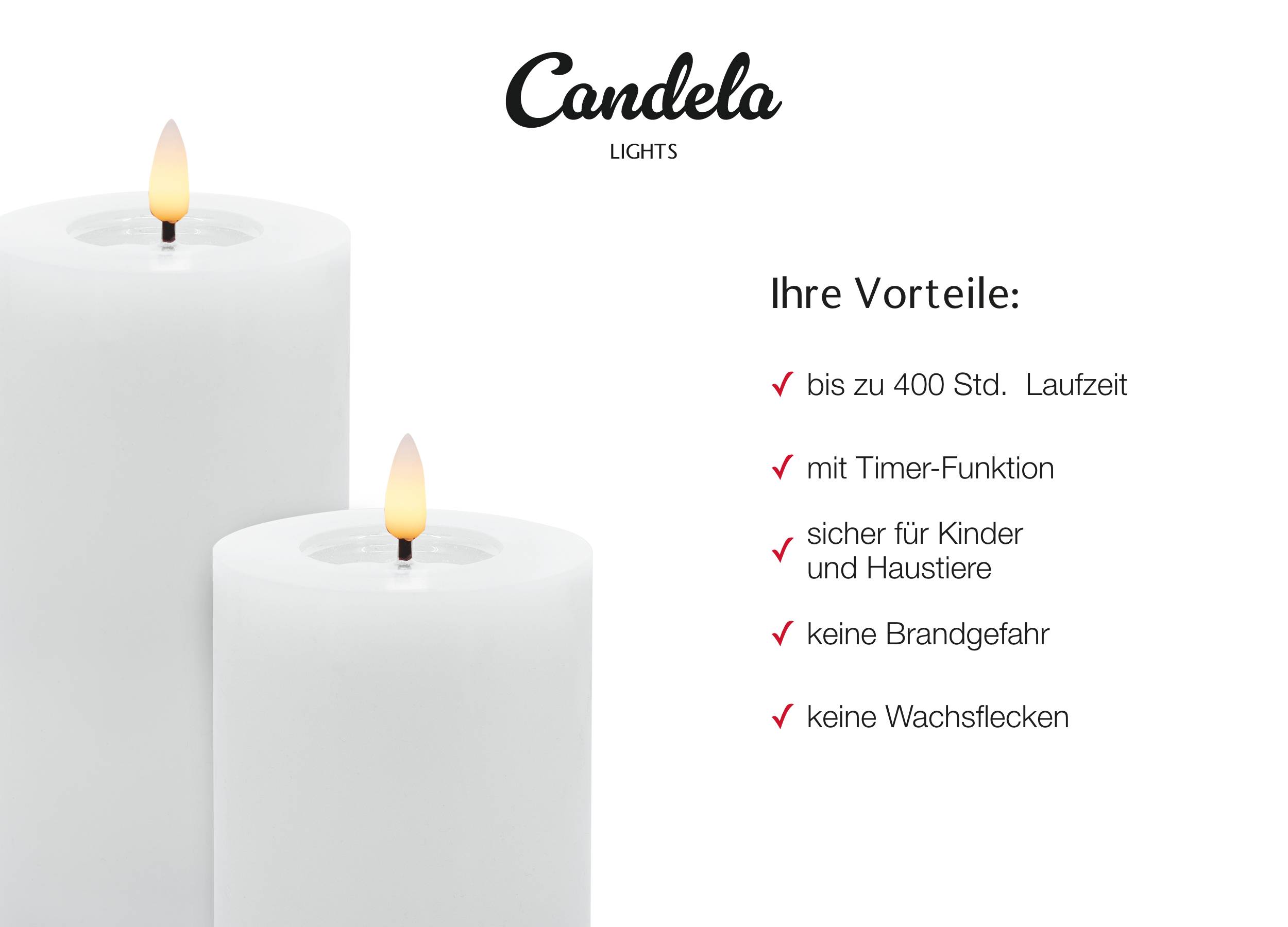 - Sicherheit: keine Brandgefahr, ideal für Haushalte mit Haustieren und kleinen Kindern