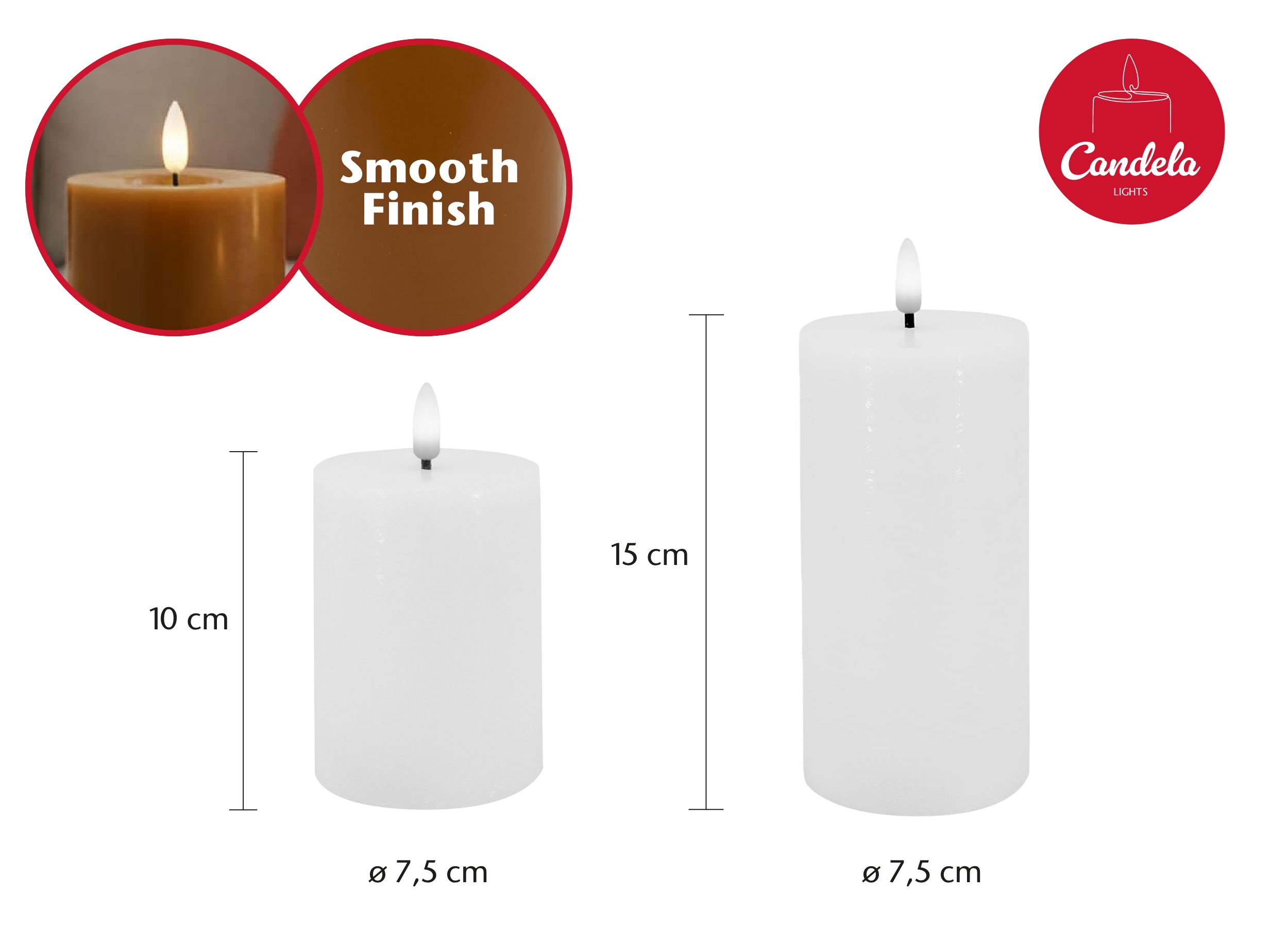 Candela Lights LED Kerzen 8er Set Winter glatt Echtwachs inklusive Fernbedienung und Batterien Timer Funktion & mehrstufig dimmbar flammenlos Echtwachskerzen Stumpenkerzen