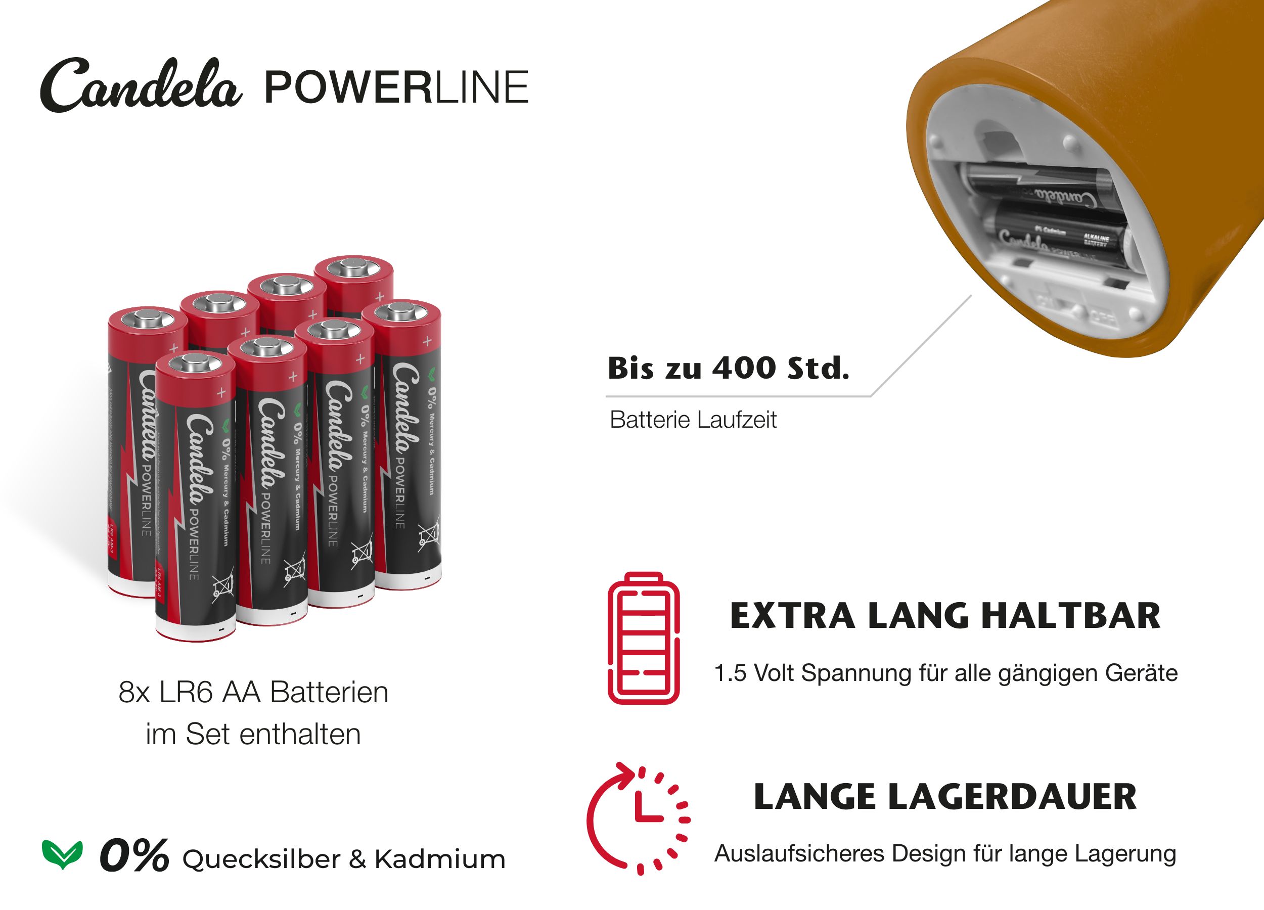 - 8x AA und 4x AAA Batterien für die Kerzen