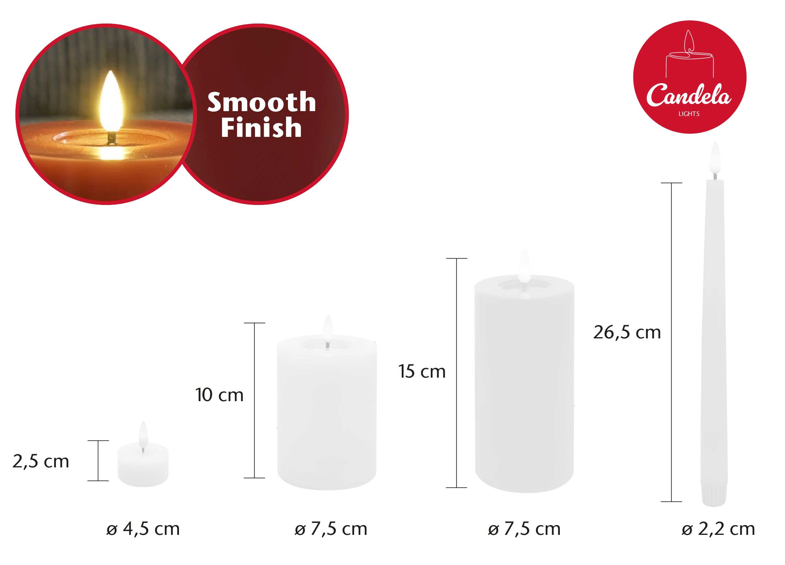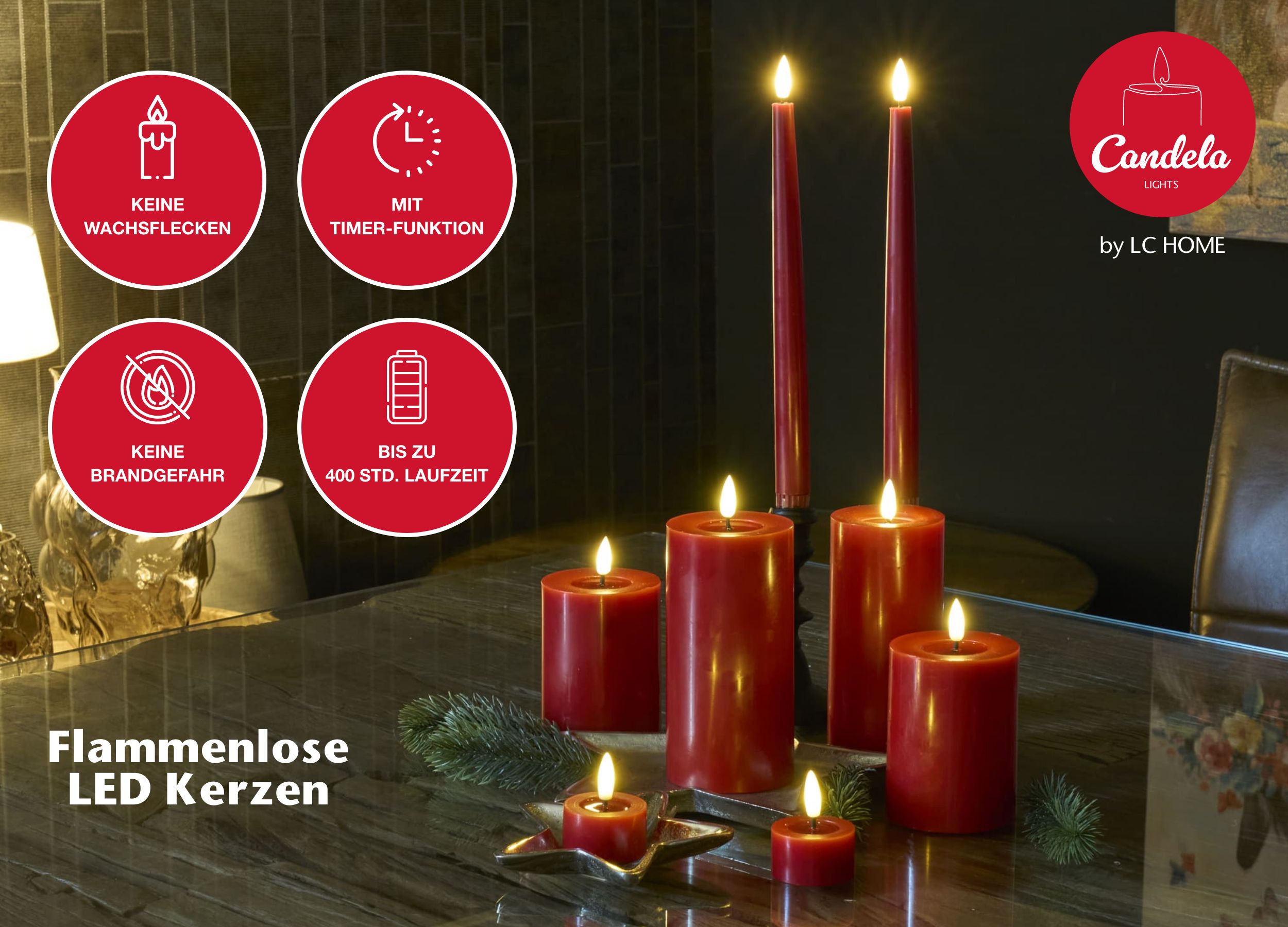 Candela Lights by LC Home sind hochwertige und handgefertigte Echtwachs LED Kerzen, die vor allem durch Ihre Qualität und Funktionalität zu beeindrucken wissen. Diese Echtwachskerzen mit LED Licht sind eine innovative und sichere Alternative zu herkömmlichen Wachskerzen und wirken so realistisch, dass die praktisch nicht von normal brennenden Kerzen zu unterscheiden sind.