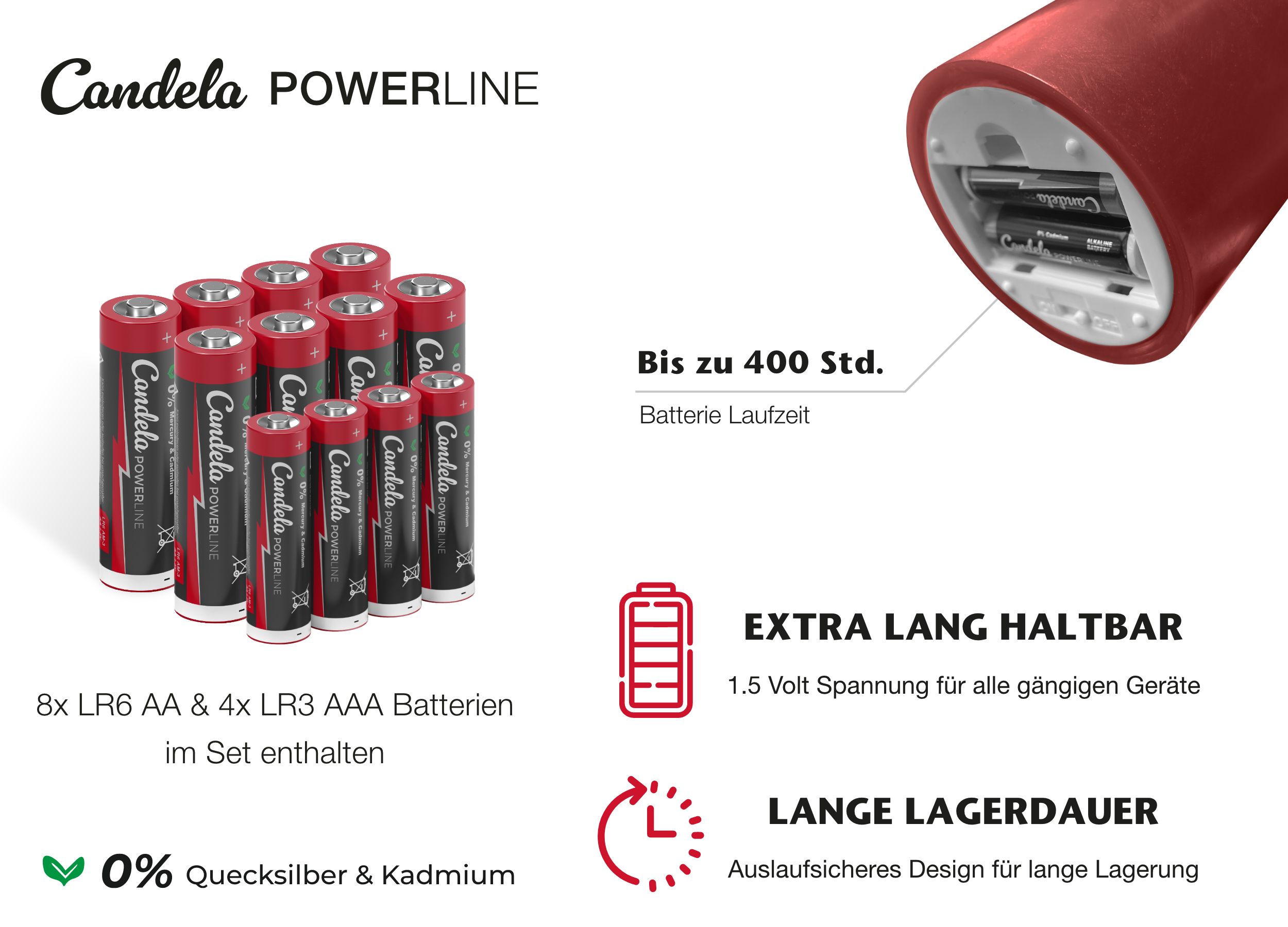 - 8x AA und 4x AAA Batterien für die Kerzen