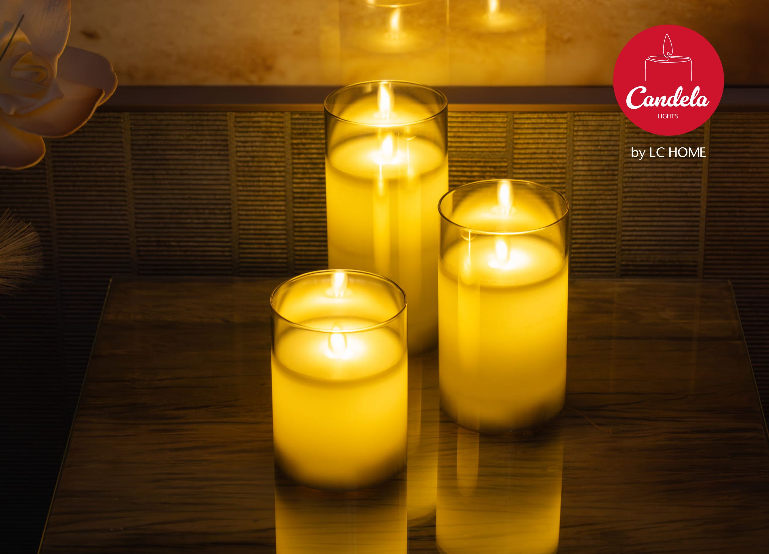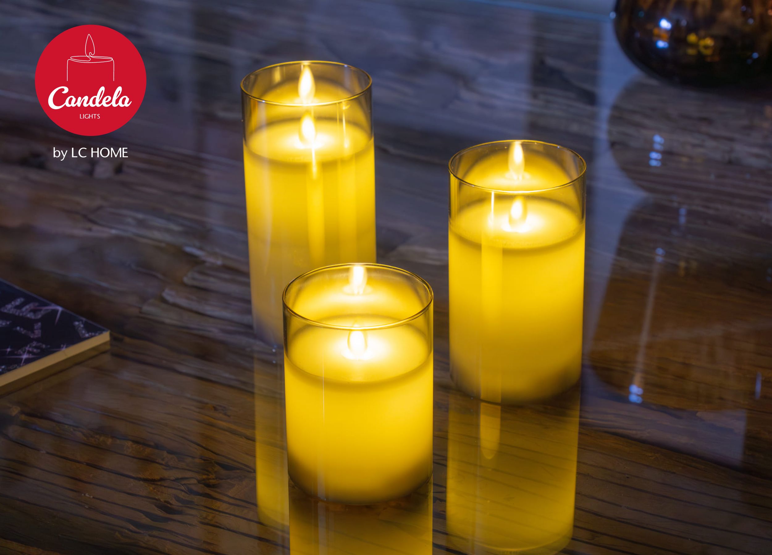 Erleben Sie die Candela Lights Festival Collection, welche Ihre Räume auf besondere Weise beleuchten wird. Die Kombination von moderner LED-Technologie, Glas und Echtwachs schafft eine warme und einladende Atmosphäre, ohne dabei auf die Sicherheit und Bequemlichkeit einer LED-Beleuchtung zu verzichten. Diese LED Kerzen wirken so realistisch, sie sind praktisch fast nicht von normal brennenden Kerzen zu unterscheiden.