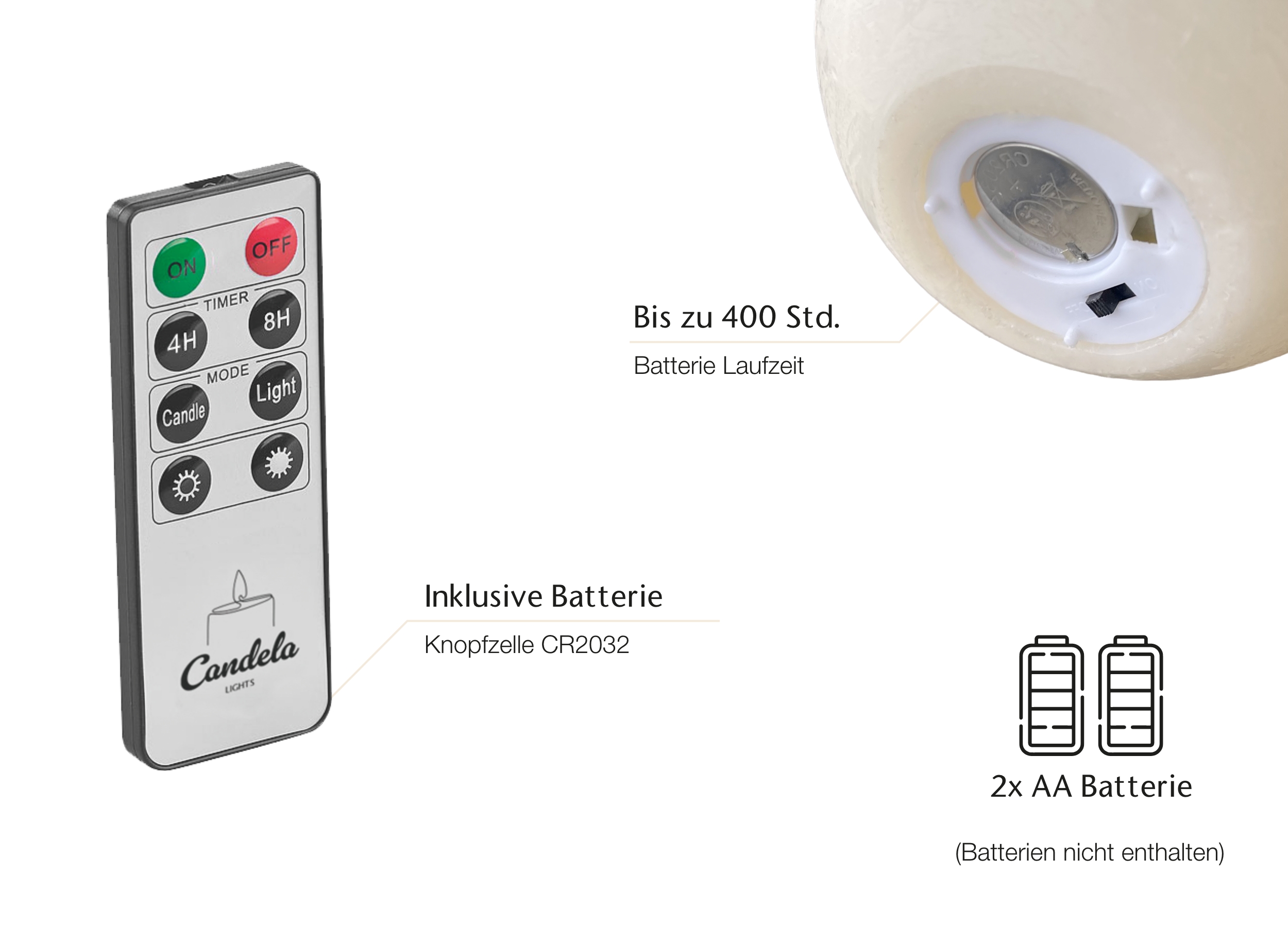 - 2x LED-Kerze