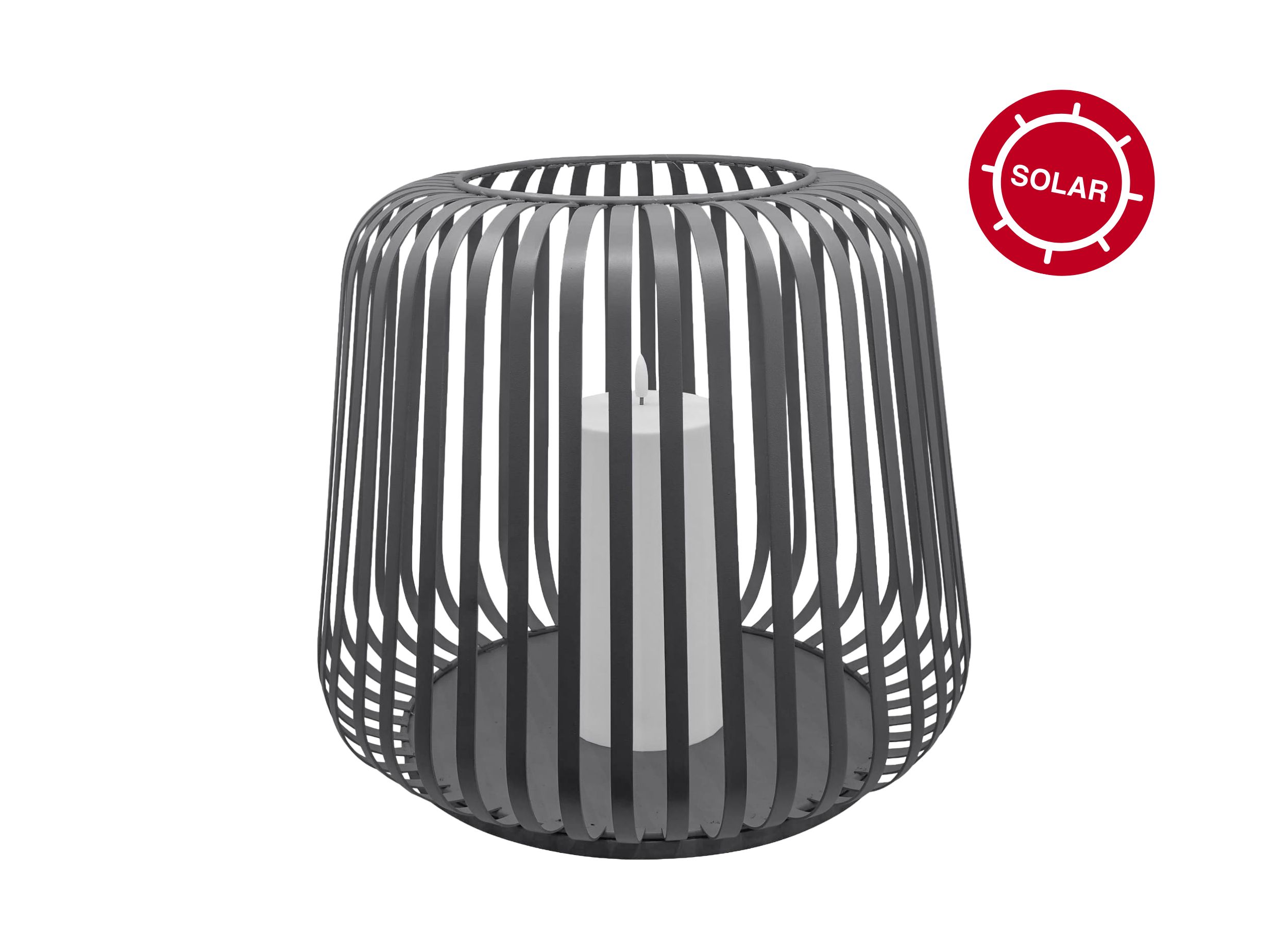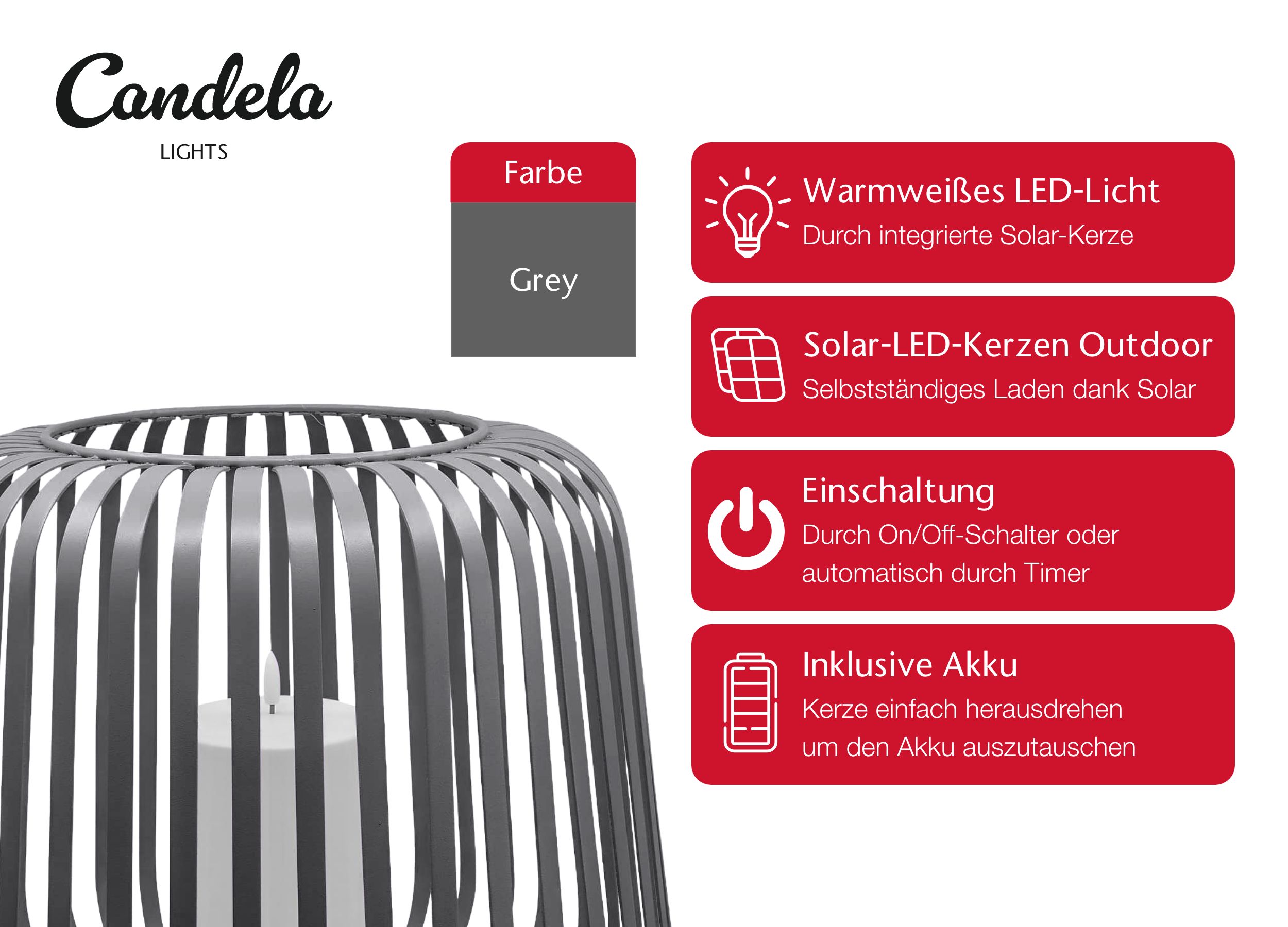 Candela Lights Solar Laterne Cottage Metal Grey H:35xØ40cm mit LED Stumpenkerze flammenlos warmweiß Metall Outdoor & Indoor Dekolicht