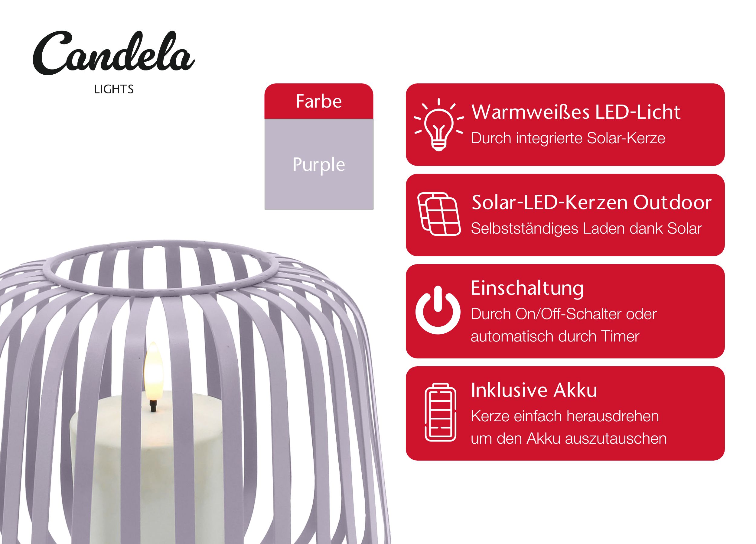 Candela Lights Solar Laterne Cottage Metal Purple H:17xØ20cm mit LED Stumpenkerze flammenlos warmweiß Metall Outdoor & Indoor Dekolicht