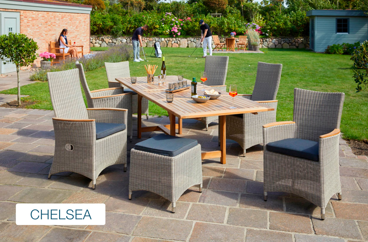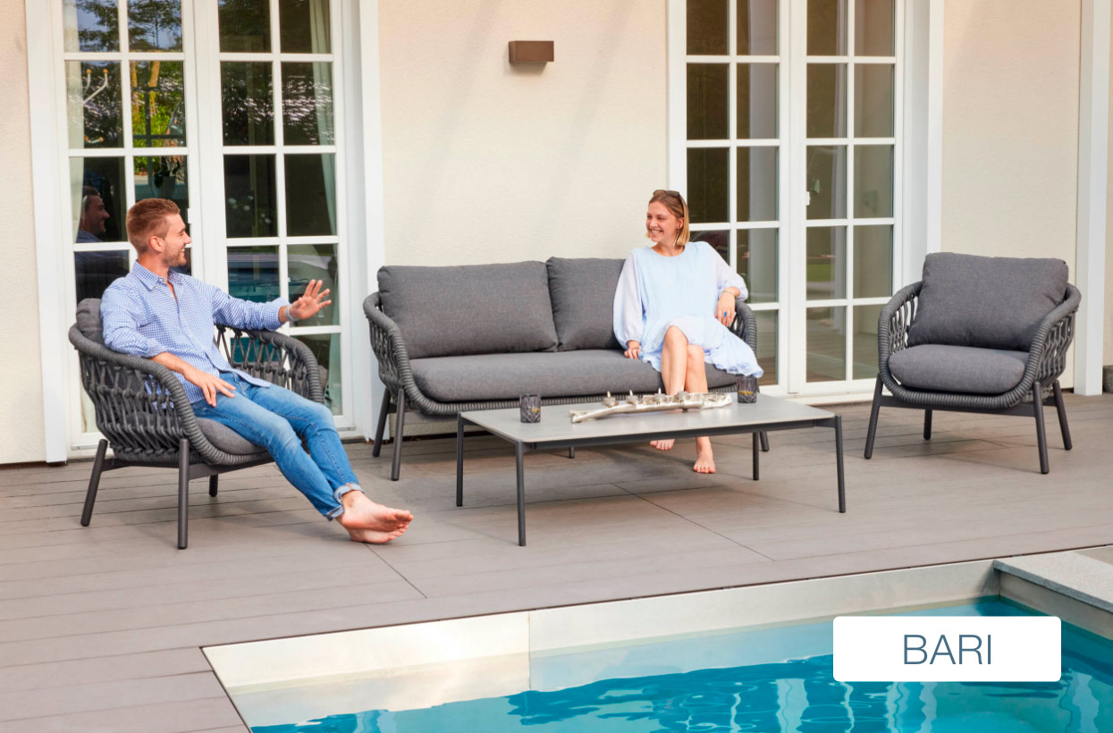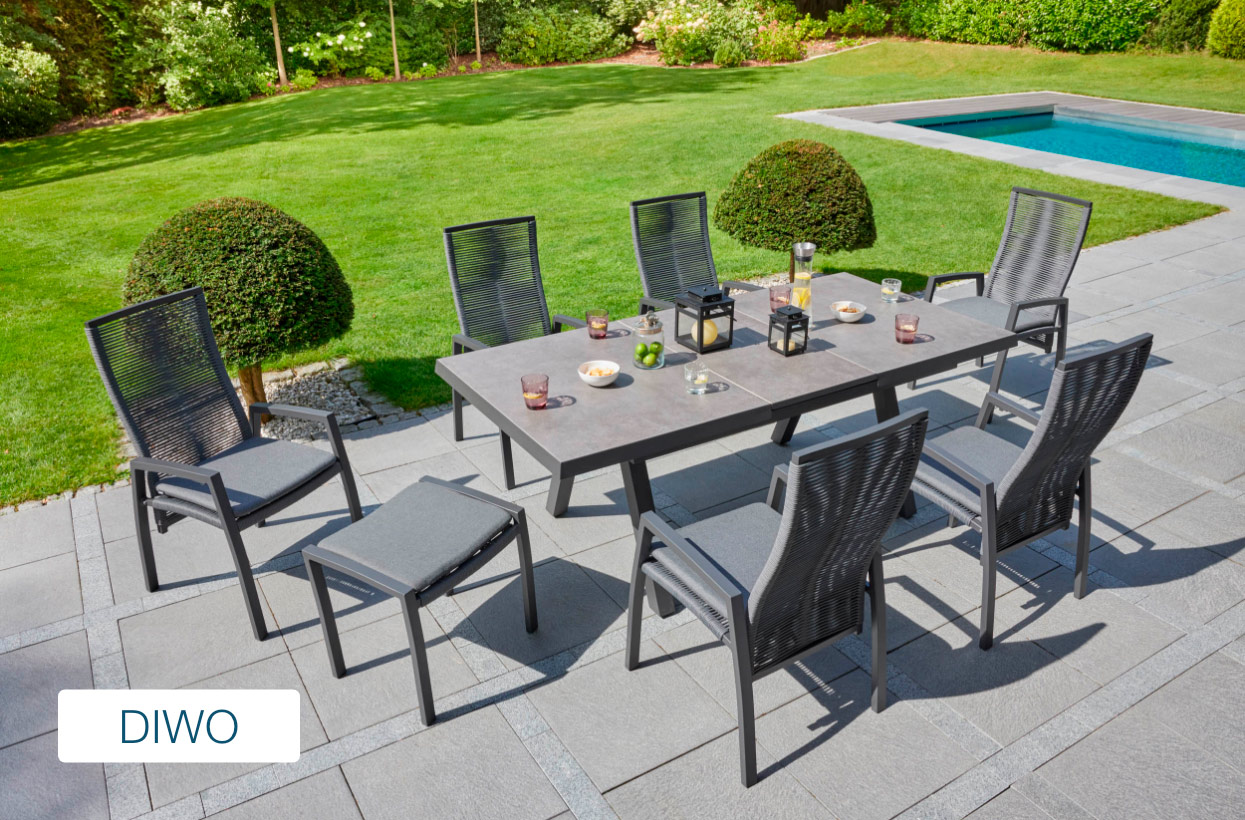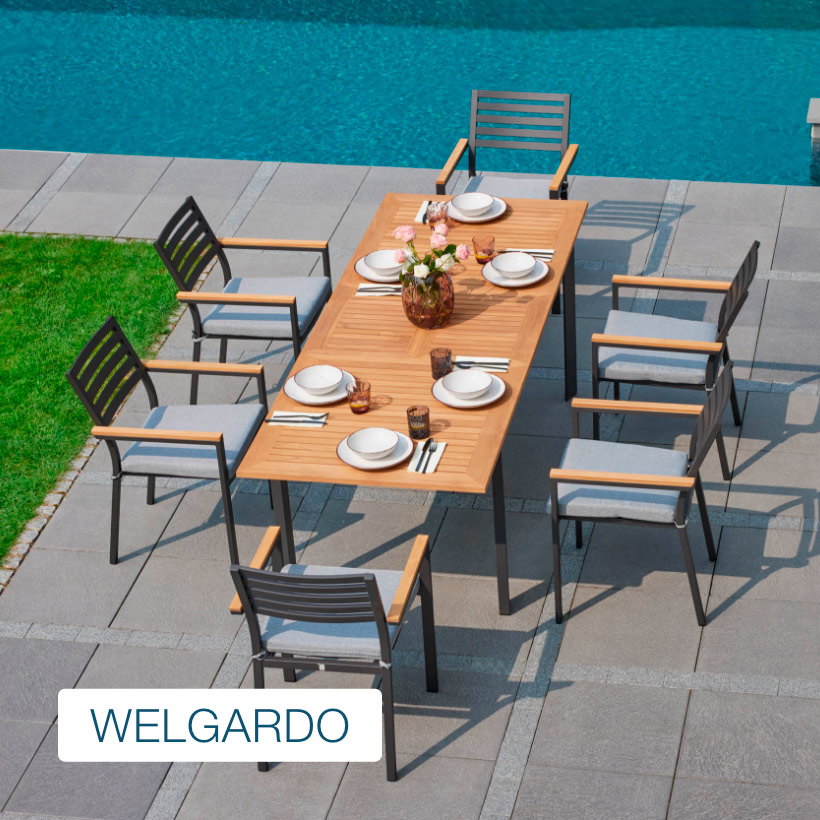 Im Bereich der Gartenmöbel haben Sie die Wahl aus verschiedensten Materialien wie Rattan (Polyrattan), Teakholz, Aluminium und Textilene. Jedes Material hat seinen eigenen Charakter und bietet Ihnen zahlreiche Vorzüge.