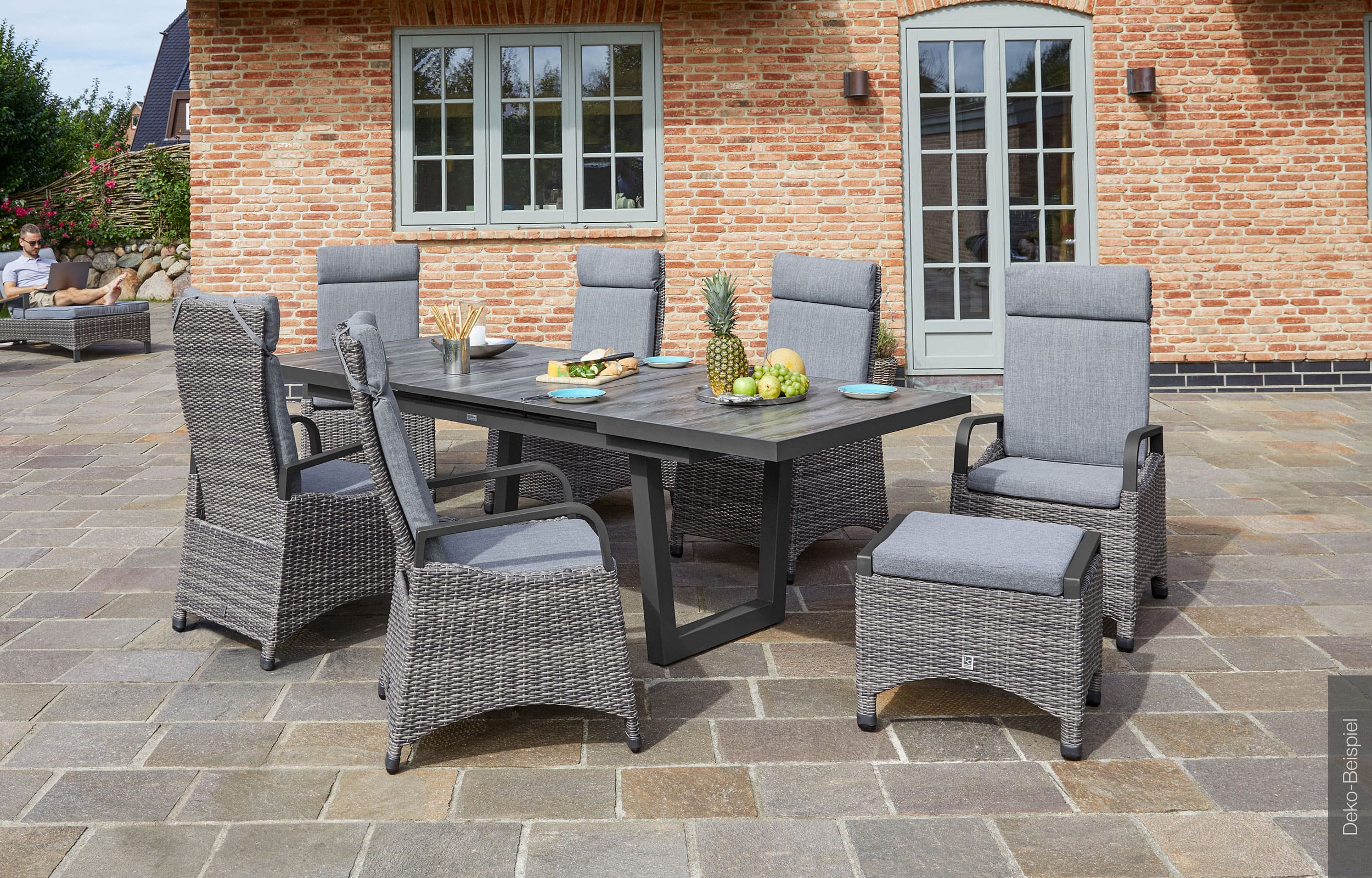 - Material: Aluminium, Polyrattan / Bezug: 100% Polyester / Polsterung: Schaumstoff
