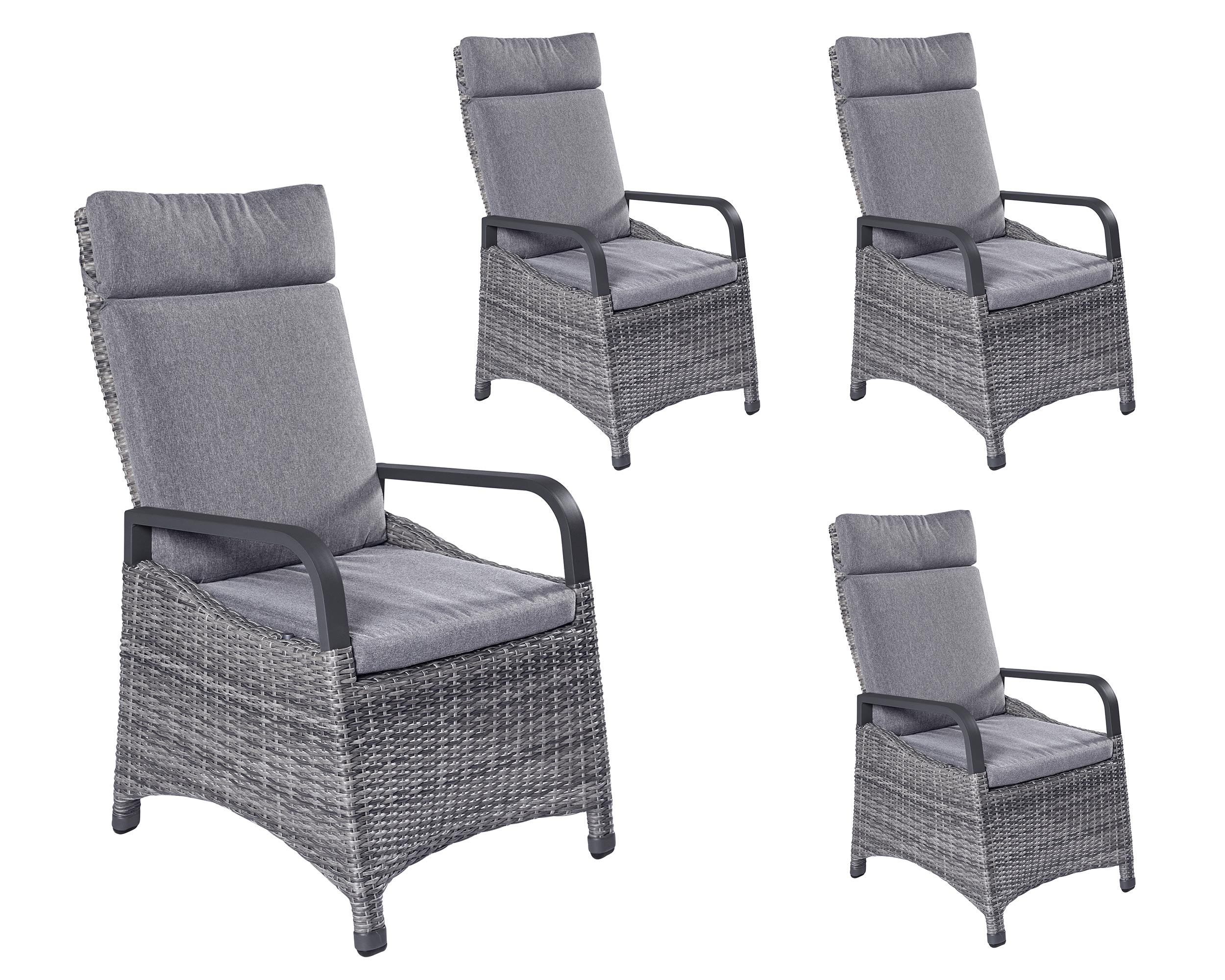 LC Garden »Komido« 4er Set Gartenstühle grau-mix Polyrattan/Aluminium Positionsstühle verstellbar