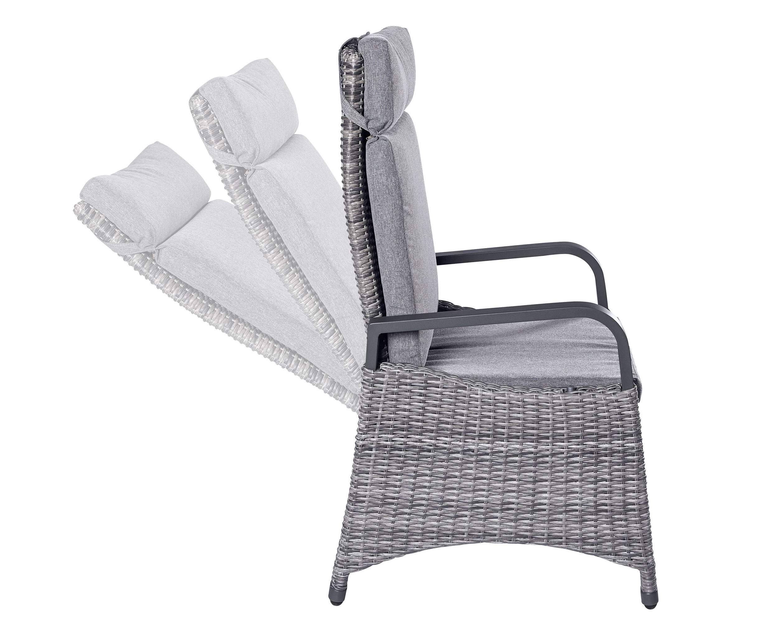 - Moderner Gartensessel mit stufenlos verstellbarer Rückenlehne und Auflage