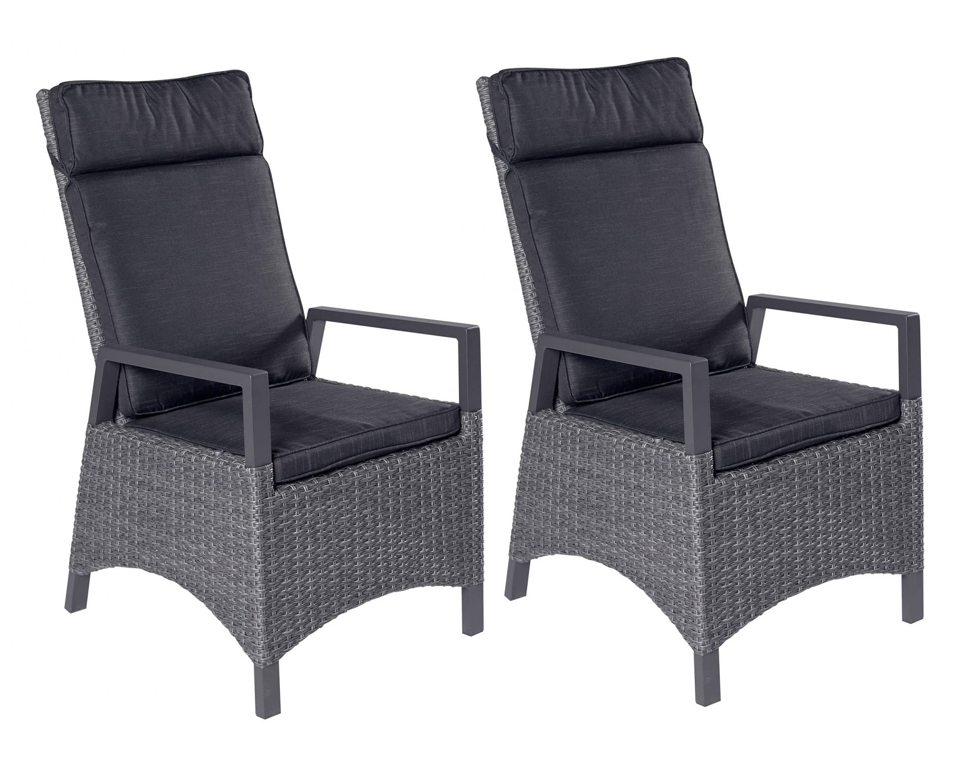 LC Garden »Keramo« 2er Set Gartenstühle grau Polyrattan/Aluminium Positionsstühle verstellbar