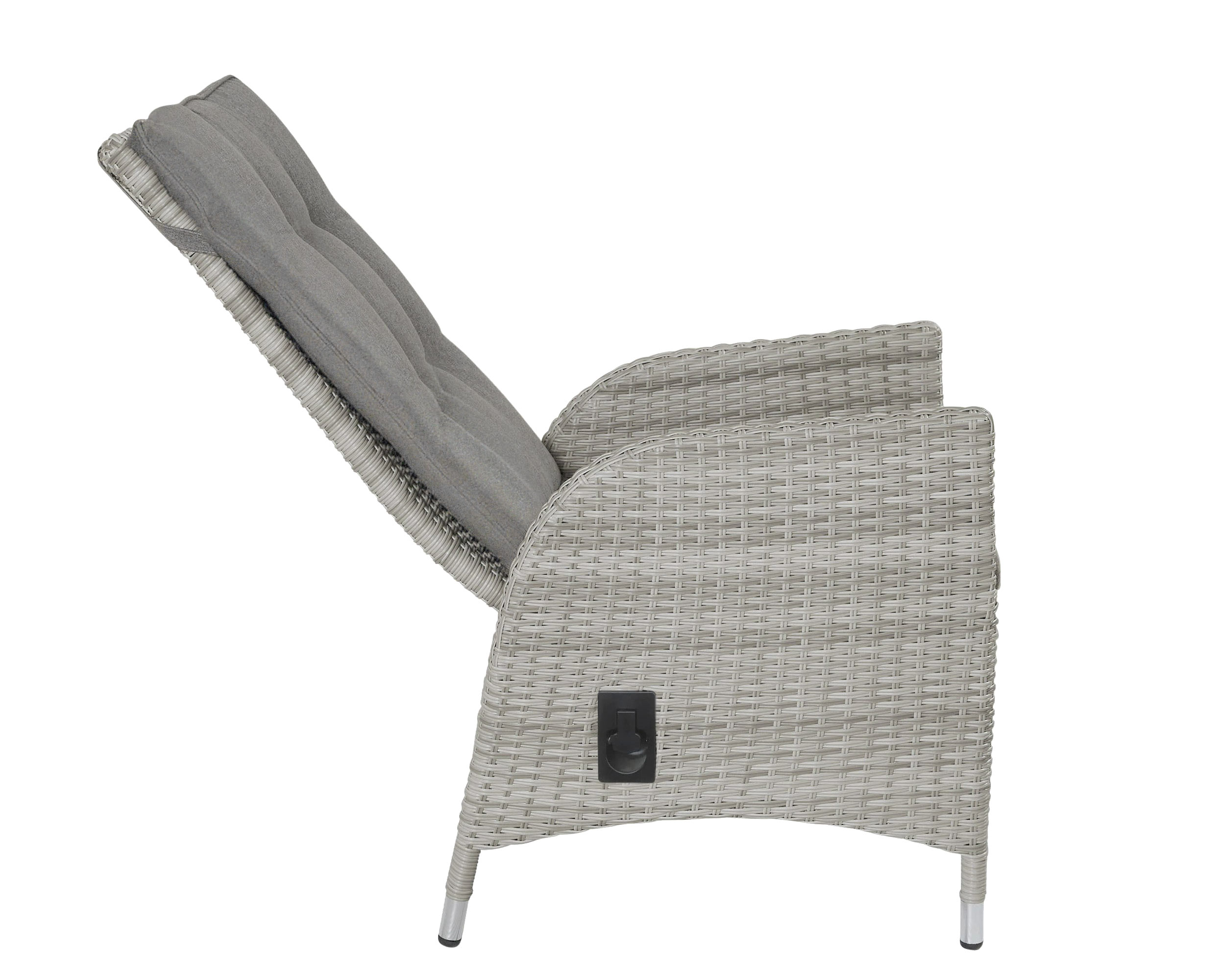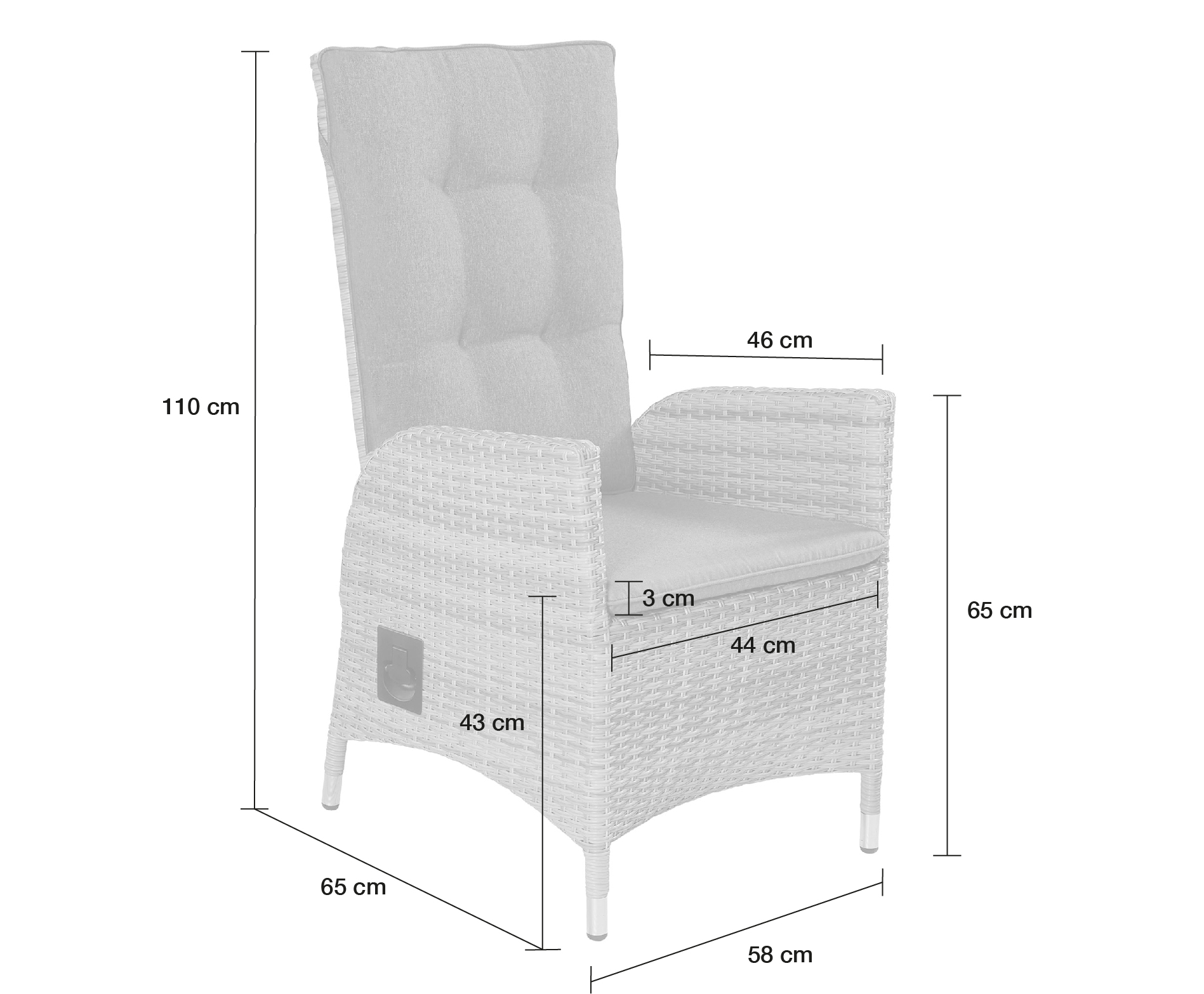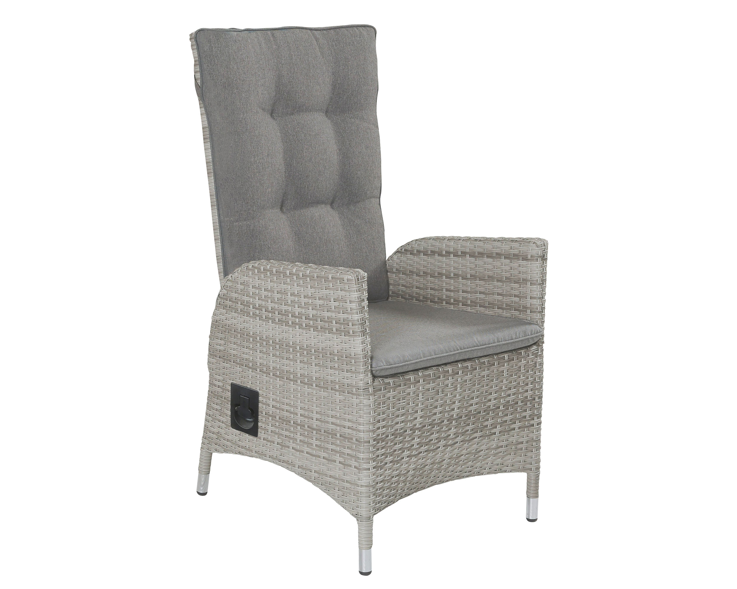 Die Gartenstühle ergänzen das Ensemble ideal. Sie sind mit stufenlos verstellbaren Rückenlehnen und komfortablen Sitz- und Rückenpolstern ausgestattet, was jederzeit optimalen Sitzkomfort gewährleistet. Die Hochlehner sind nicht nur leicht und rostunempfindlich, sondern auch auf Langlebigkeit ausgelegt. Praktischerweise sind die abgebildeten Sitzauflagen im Lieferumfang der Diningsessel enthalten. Diese Kombination aus Komfort und modernem Design macht die "Roma"-Serie zu einer hervorragenden Wahl für gesellige Stunden im Freien.