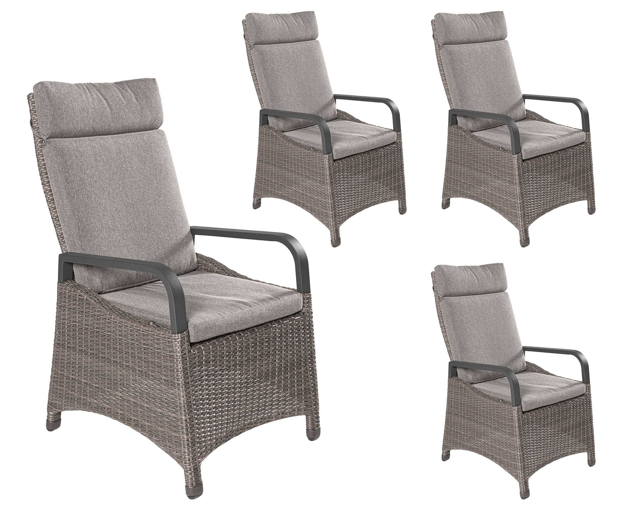 LC Garden »Komido« 4er Set Gartenstühle omega-braun Polyrattan/Aluminium Positionsstühle verstellbar