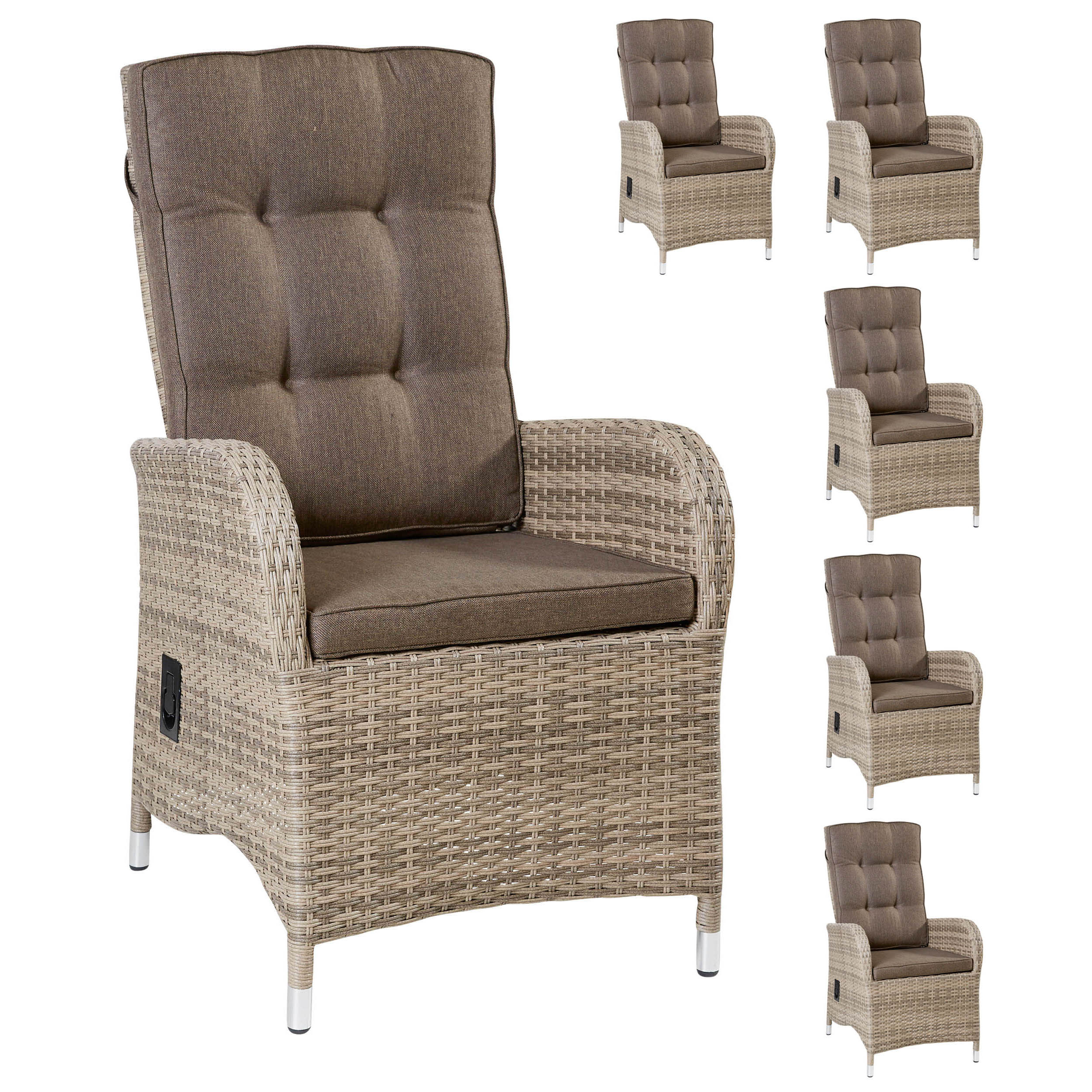 Dieser bequeme Positionsstuhl aus der attraktiven Möbelserie Turin wird Sie begeistern. Der mit Polyrattan-Geflecht bezogene Gartenstuhl aus Aluminium bietet, dank stufenlos verstellbarer Rückenlehne und großzügiger Sitzbreite, angenehmen Sitzkomfort ohne sich eingeengt zu fühlen. Der Sessel ist langlebig, unempfindlich gegen Rost und leicht. Der Hochlehner-Diningsessel wird mit der abgebildeten Sitzauflage geliefert.