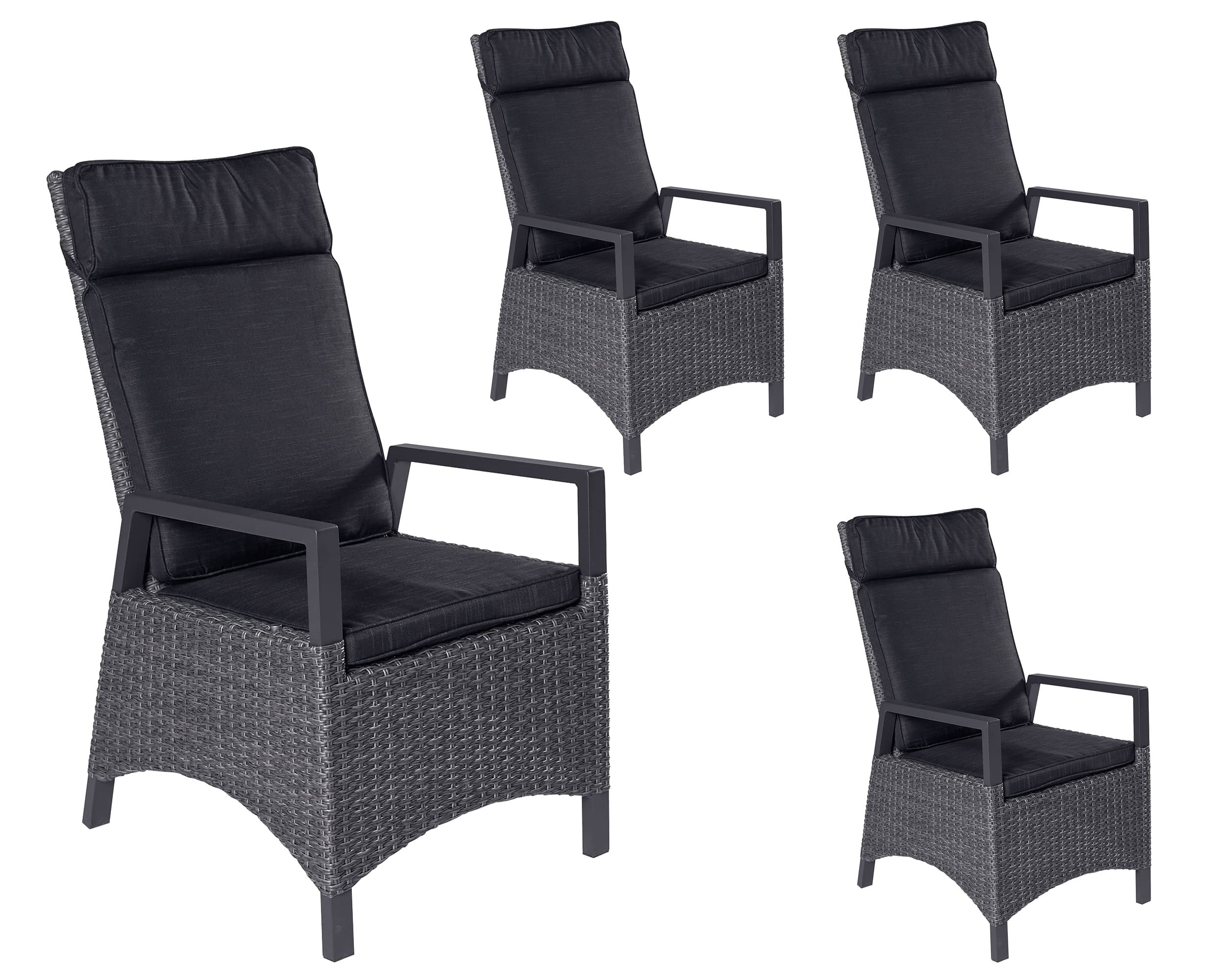 LC Garden »Keramo« 4er Set Gartenstühle grau Polyrattan/Aluminium Positionsstühle verstellbar
