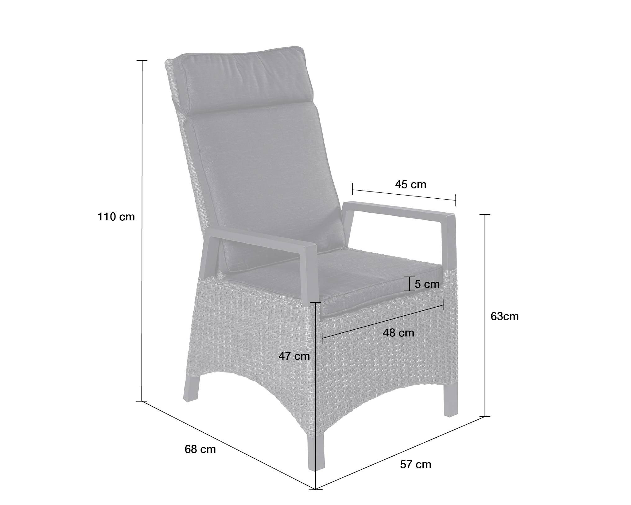 - Moderne Gartensessel mit stufenlos verstellbarer Rückenlehne und Auflage