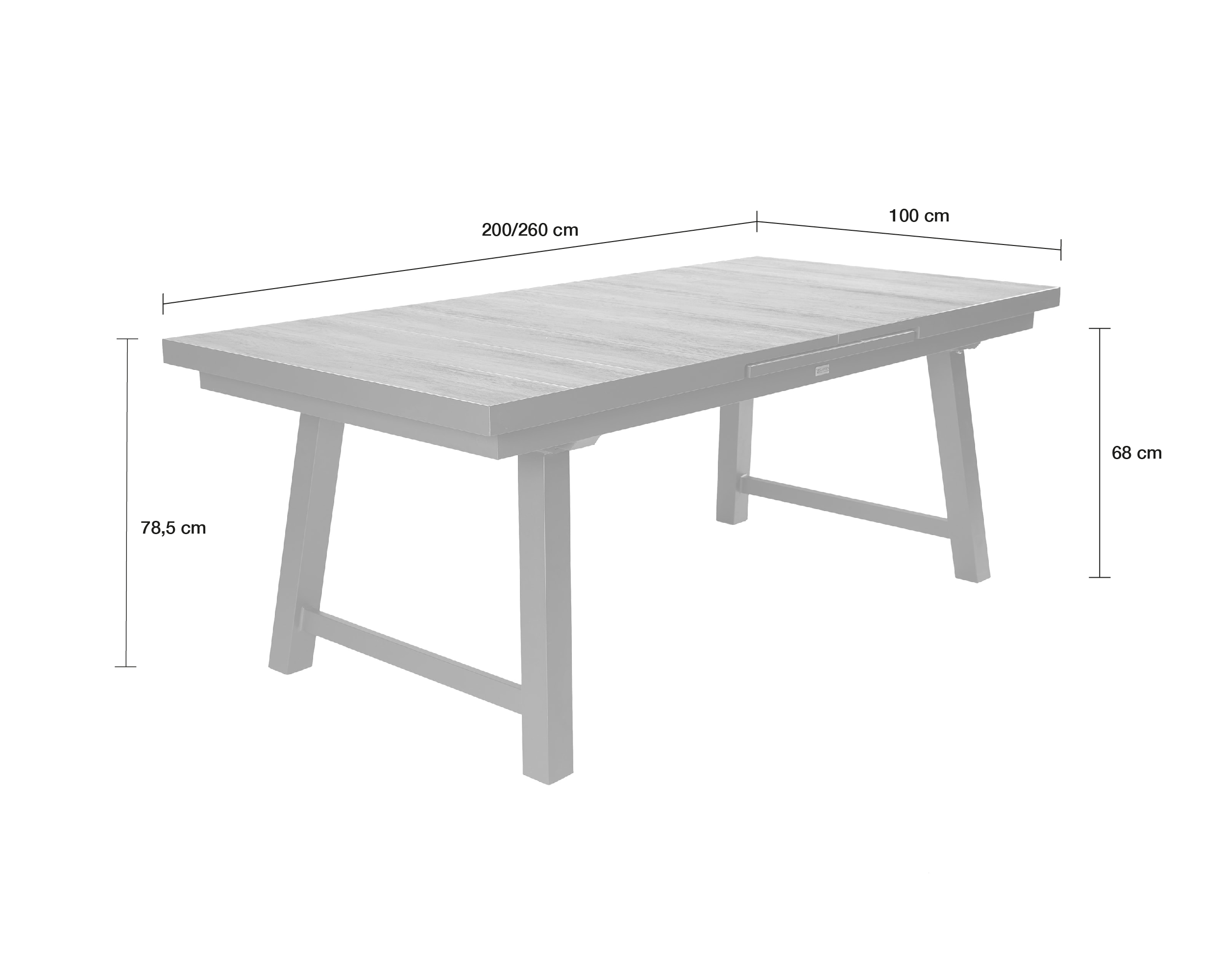 - Ausziehbarer Gartentisch 200/260x100cm mit modernem Gestell