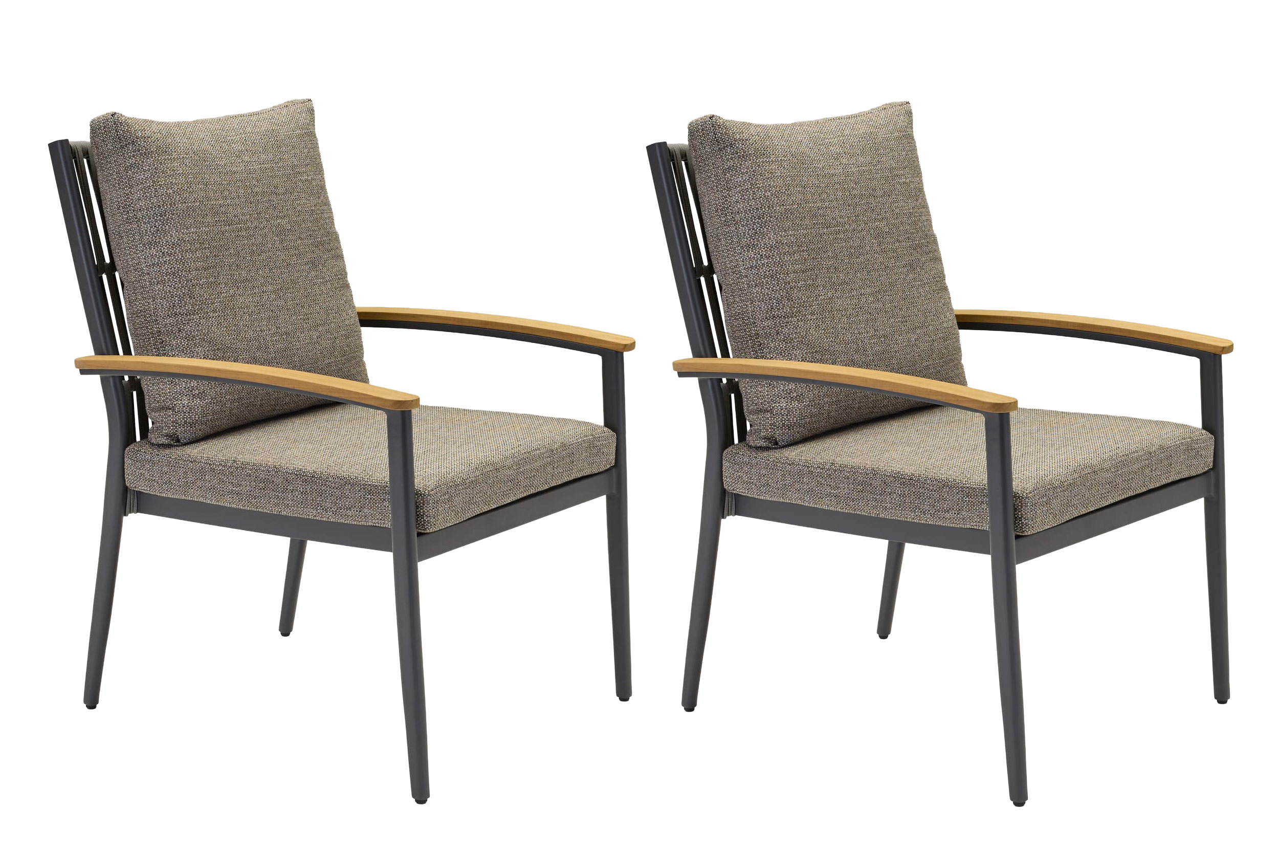 LC Garden »Avento« 2er Set Armlehnstuhl Gartenstuhl Anthrazit inkl. Teakarmlehnen