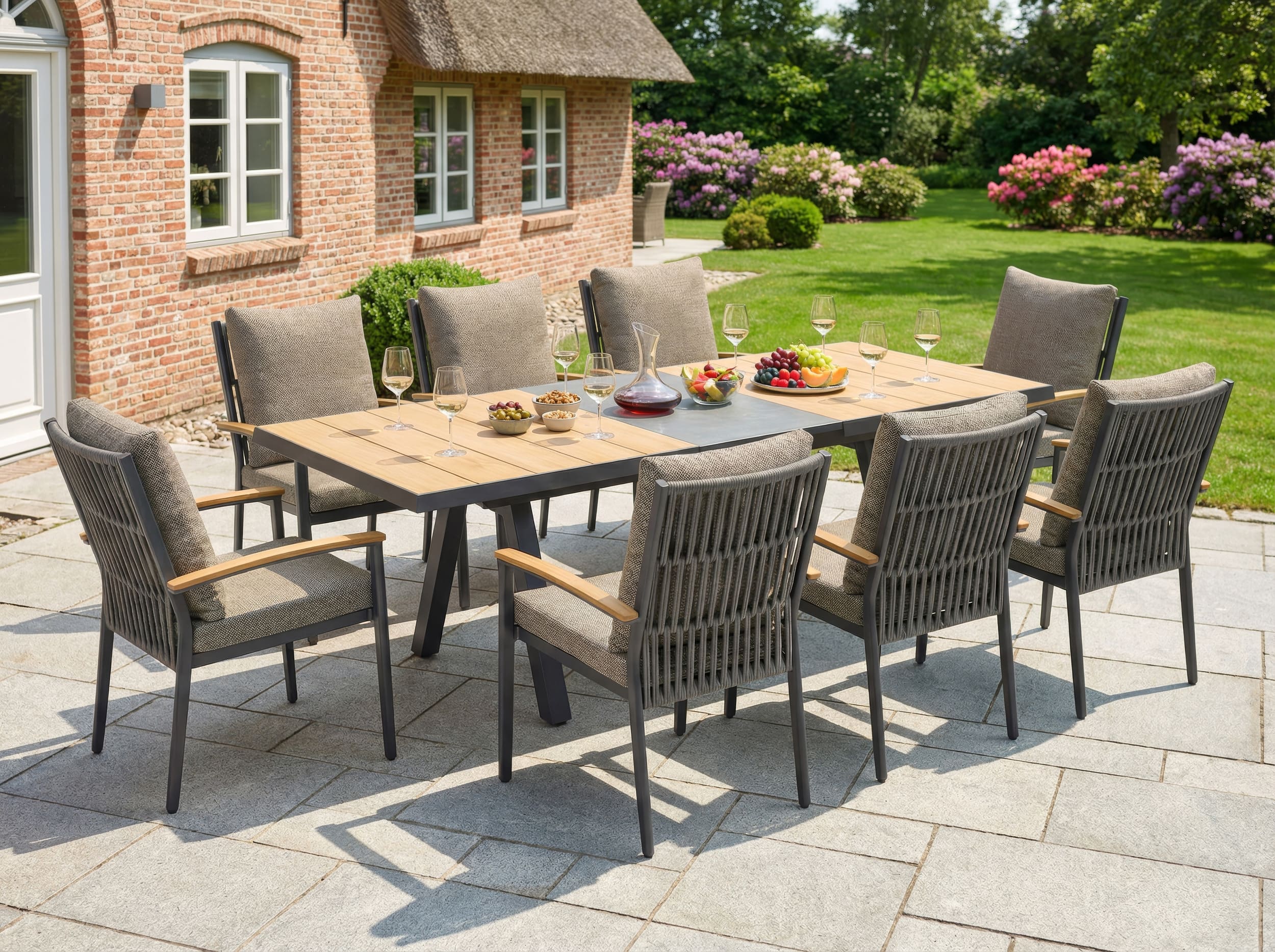 - Wetterfeste Outdoor-Qualität: Robuste, rostfreie Aluminiumkonstruktion und pflegeleichte Kissenbezüge.